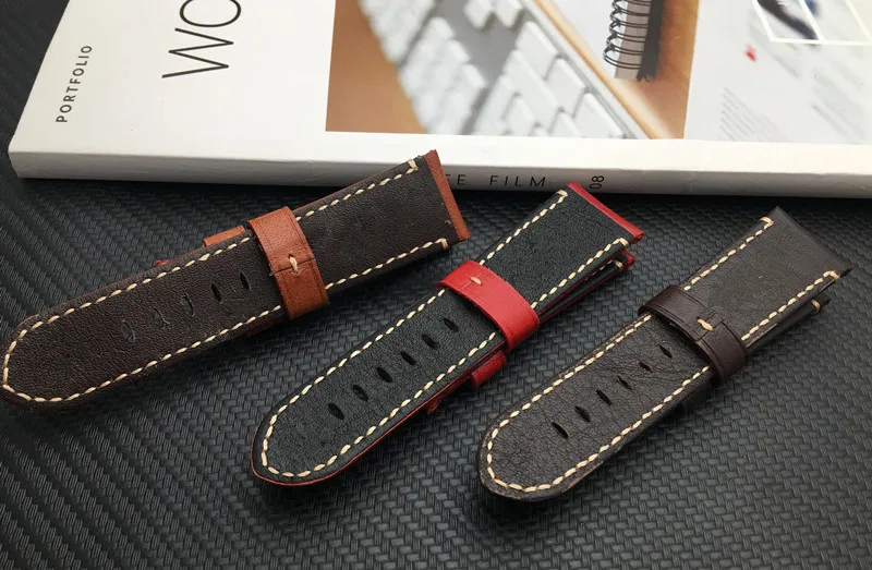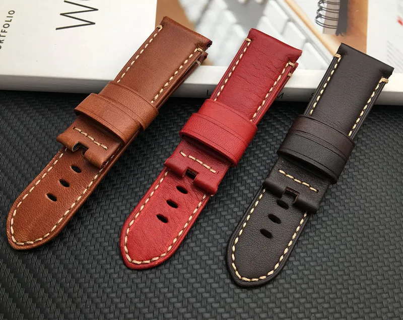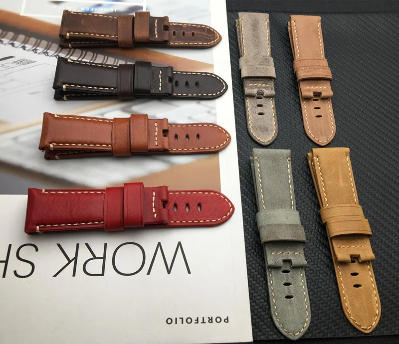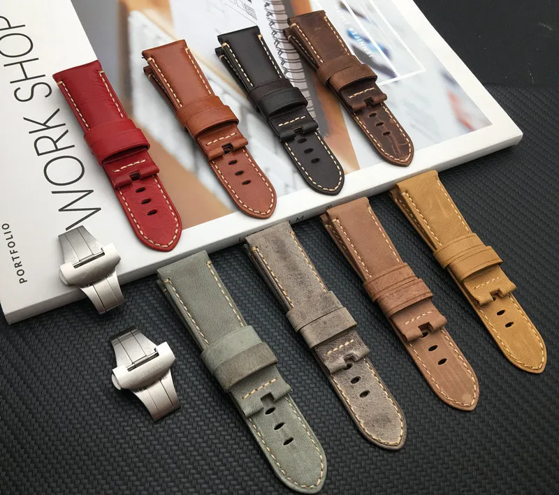 Высокое качество 24 мм коричневый серый винтажный Ретро итальянский ремешок из натуральной кожи для часов Panerai ремешок Ремешок Бабочка Пряжка ремень