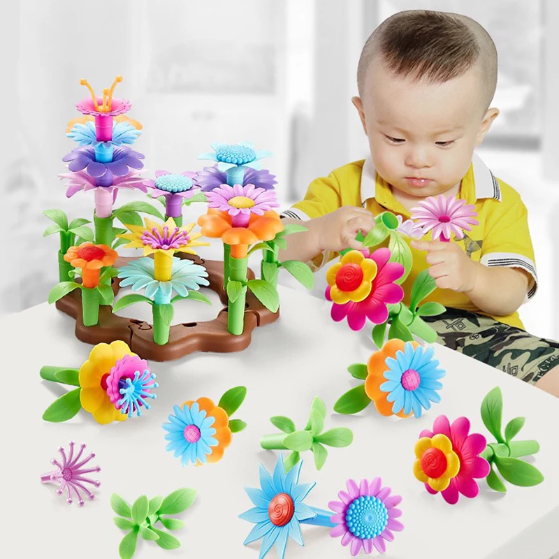 Это интересный набор игрушек для создания цветов, предназначенный для девочек. Девочки могут построить свой сад мечты дома, тем самым улучшая их зрительно-зрительную координацию и распознавание цвета.