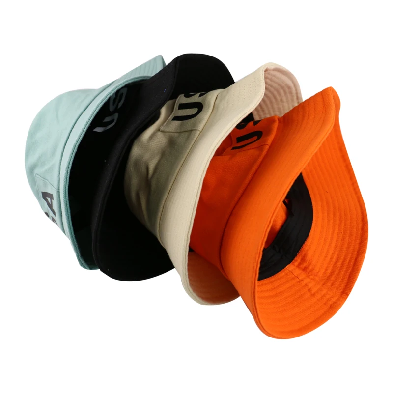 FOXMOTHER New Fashion Outdoor Travel Hats Orange Black USA Letter Fisherman Fishing Caps Sun Bucket Hats Mens Women