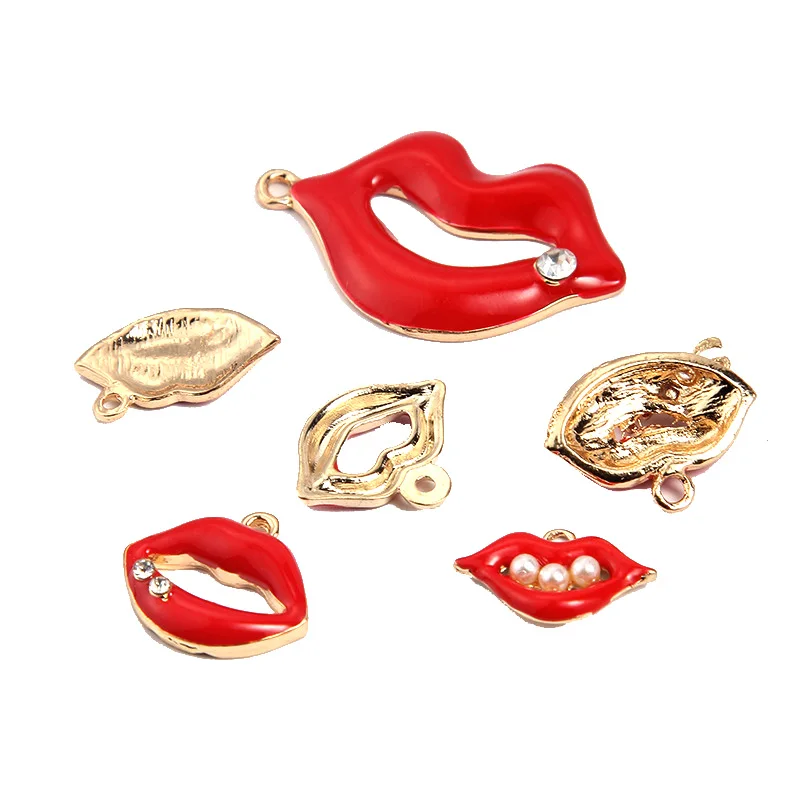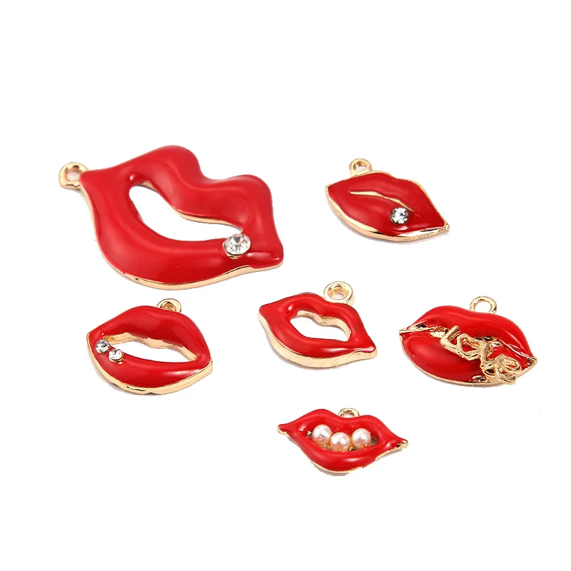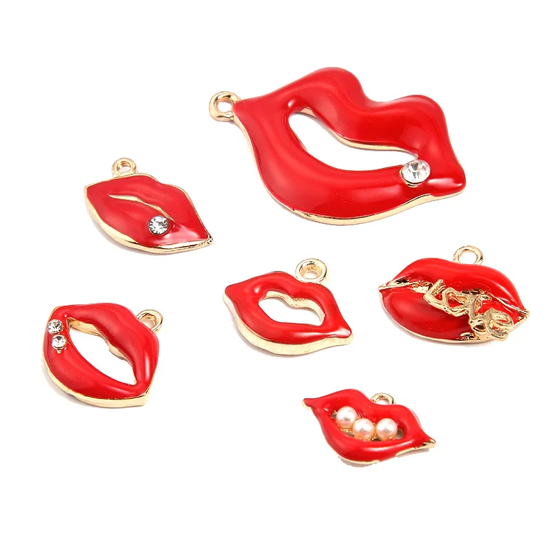 10 шт. сексуальные красные губы рот цинковый сплав эмалированная подвеска ювелирные изделия фурнитура серьги ручной работы браслет аксессуары для шеи