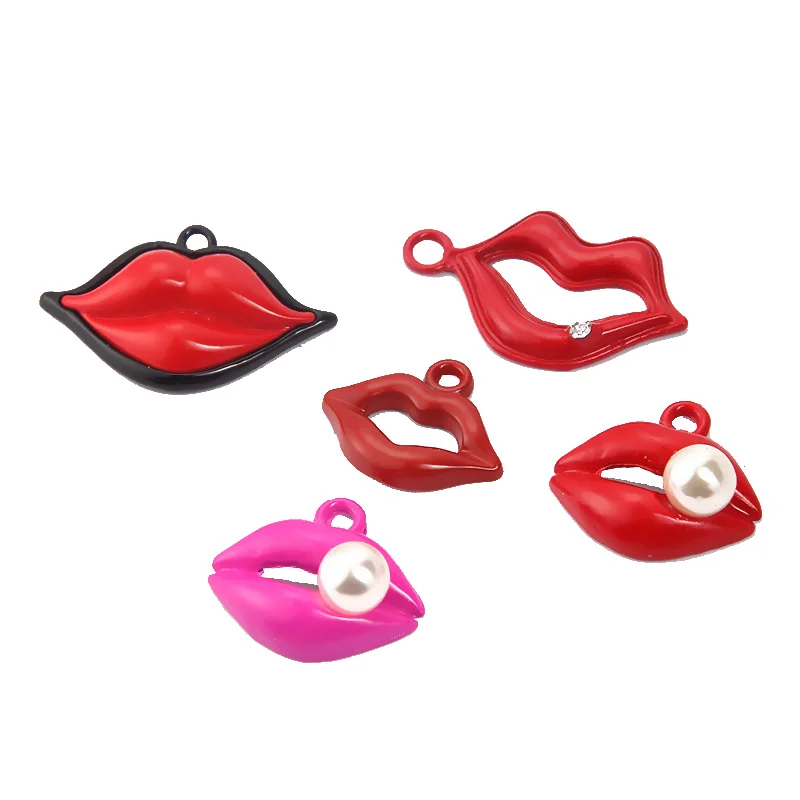 Подвески женские из цинкового сплава, с эмалью и красными губами, 10 шт.
