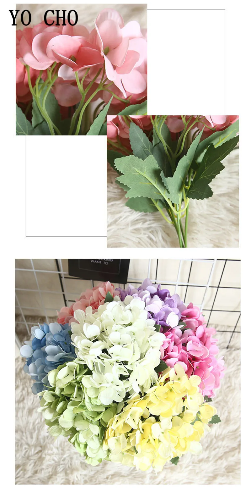 Йо Чо шелк искусственная Гортензия цветок искусственная Гортензия имитация цветок синий DIY букет Свадебный Стол вечерние украшения для дома