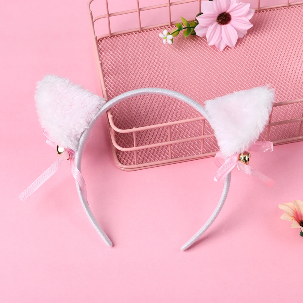 Милая повязка на голову с кошачьими ушками, плюшевая повязка на голову с кошачьими ушками, маленький колокольчик, аниме, карнавальный костюм, одежда для волос, модные аксессуары для волос