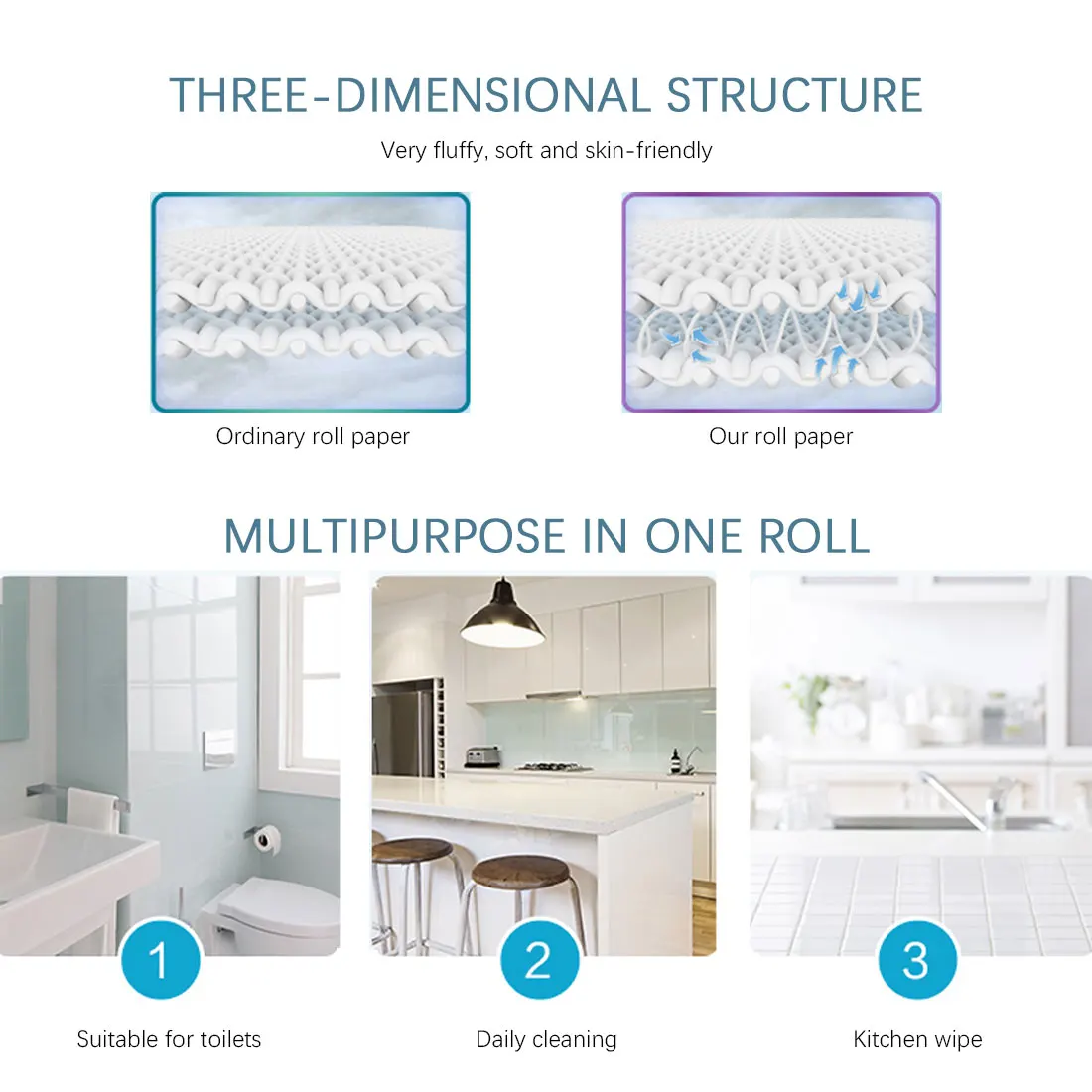 3 слоя утолщенного дизайна, повышают гибкость бумажных полотенец, двойной комфорт, многослойный уход, кожа чувствует себя более деликатной и удобной