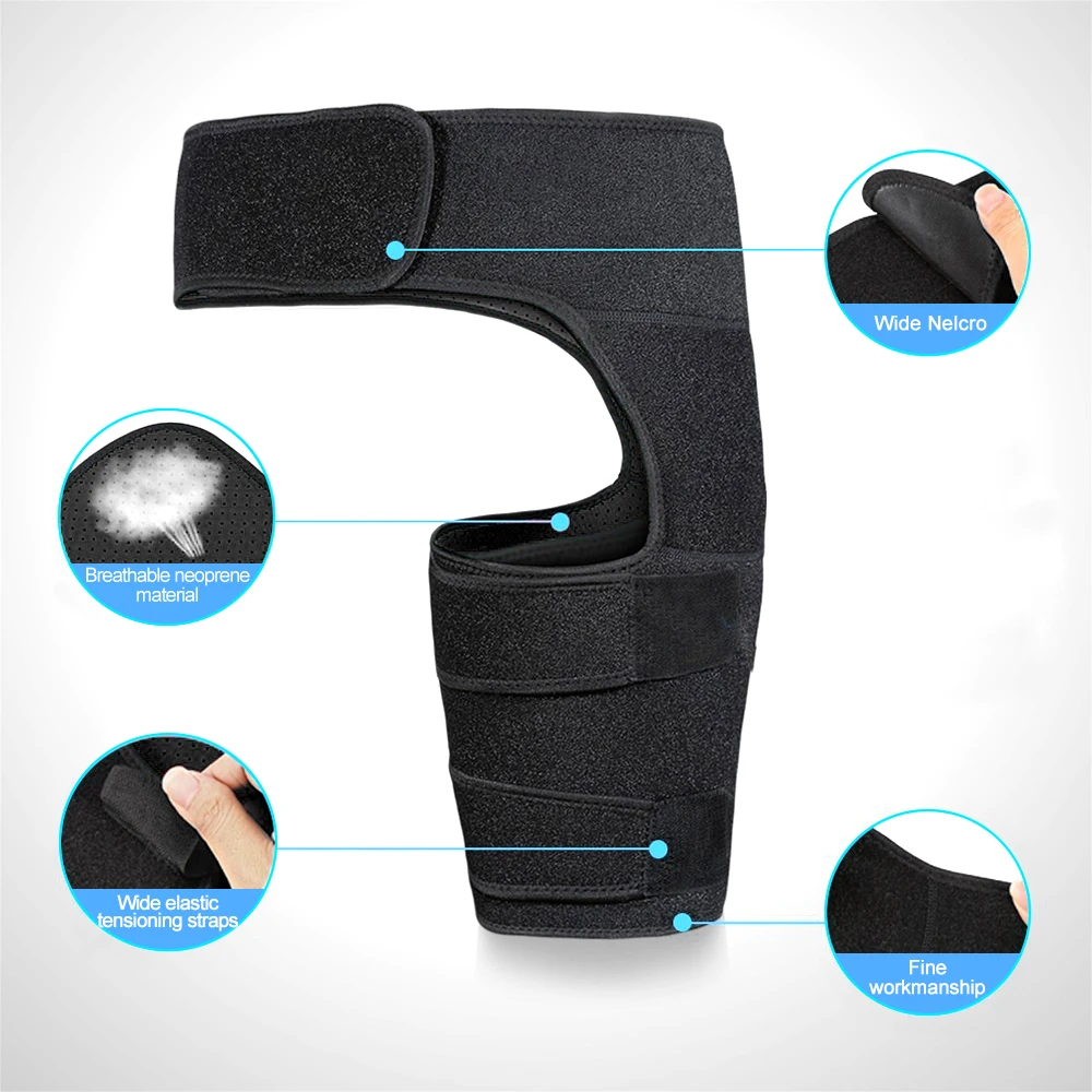 Особенности: 1. Эффективно охватывает всю верхнюю часть бедра, чтобы обеспечить оптимальную поддержку мышц и сухожилий вокруг паха, что может улучшить общую стабильность в процессе движения и облегчить сокращение силы мышц в паху, уменьшение боли от штаммов паха или рецидивирующих травм. 2. Дышащий и приятный для кожи материал обеспечивает комфорт при ношении и улучшенную вентиляцию воздуха для любого сезона. 3. Можно носить на левой или правой ноге, унисекс дизайн для мужчин и женщин, широко подходит и легко носить с регулируемым размером. 4. Подходит для помощи при болях от мышечных штаммов или травм в области бедер, паха, квада, бедра, подкожных суставов или боли в области седалищного нерва. Технические характеристики: Материал: неопрен Цвет: черный Размер: регулируемый, подходит для талии до 42 "и бедер до 27" в окружности в самом широком месте (Примечание: Пожалуйста, оставьте много хлопот как на талии, так и на бедре, чтобы ослабить или затянуть.) Функция: 1. Увеличение кровотока. 2. Поддерживать комфортный эффект с дышащей влажностью. 3. Минимизирует эффекты чрезмерного употребления мышц. 4. Реабилитация травм. Посылка включает в себя: 1 * компрессионный бандаж для бедра