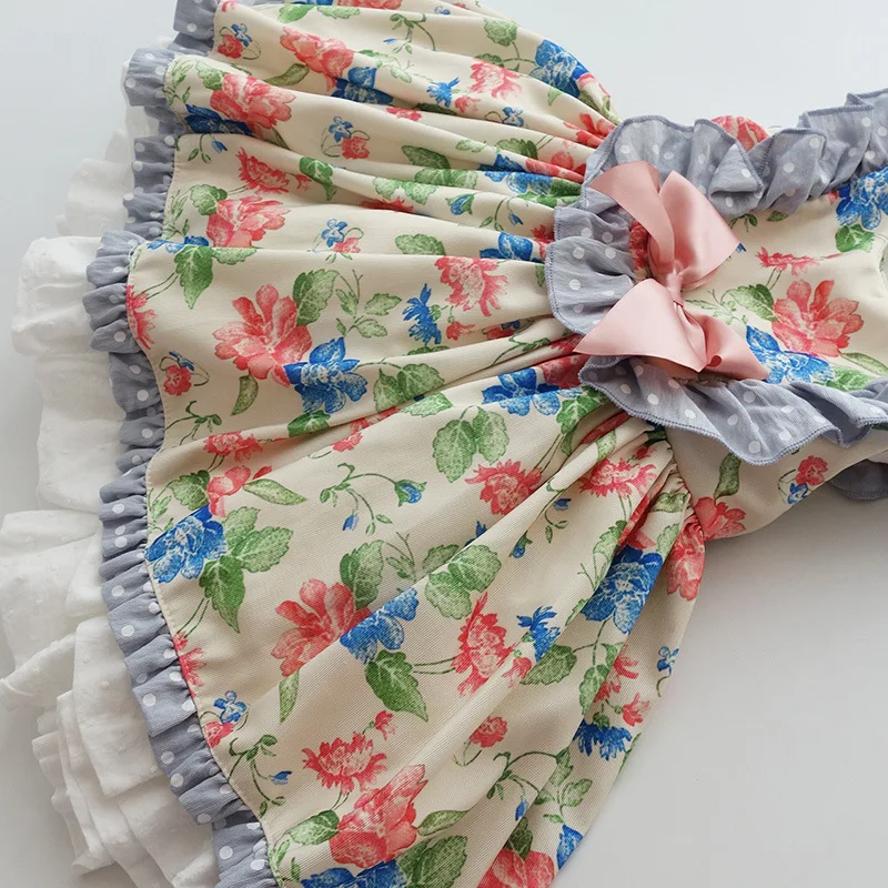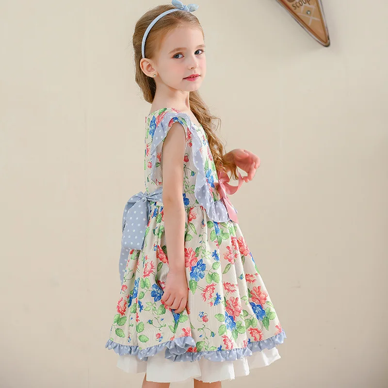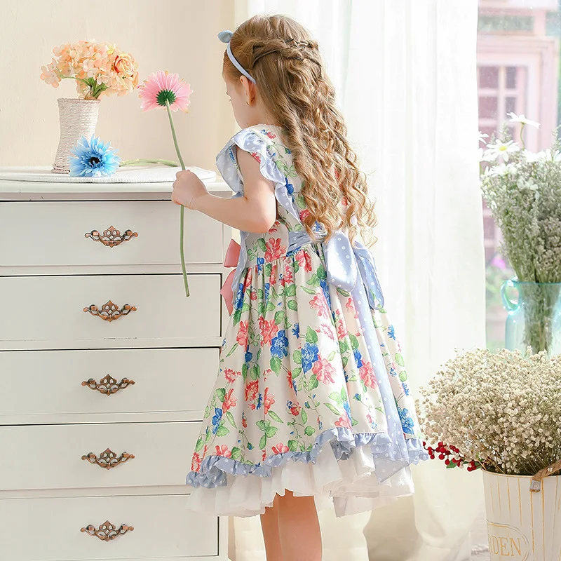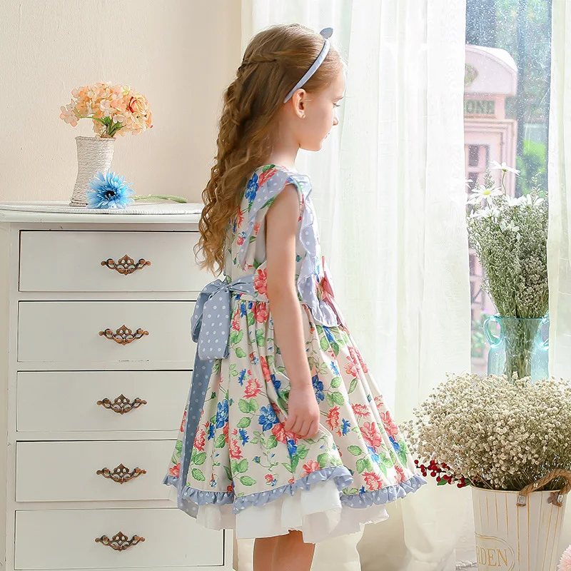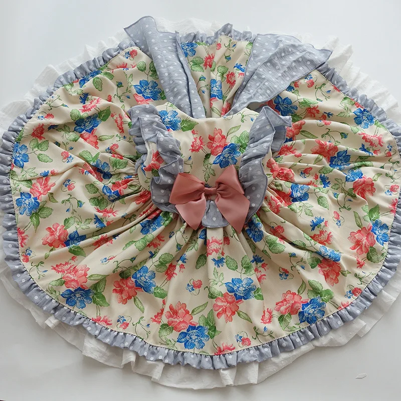 2 предмета, испанские платья для девочек, платье принцессы для свадебной вечеринки, дня рождения, эксклюзивная Рождественская одежда с цветочным принтом для маленьких девочек