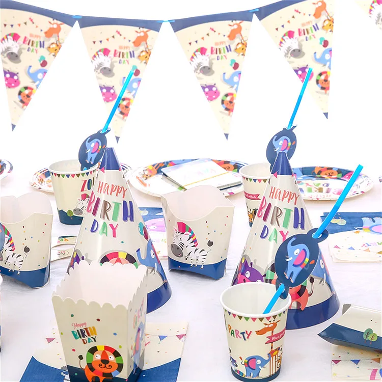 Вечерние одноразовые столовые приборы в джунглях, украшения для первого дня рождения, Детские принадлежности, декоративные бумажные тарелки, соломенный Anniversaire Baby Shower