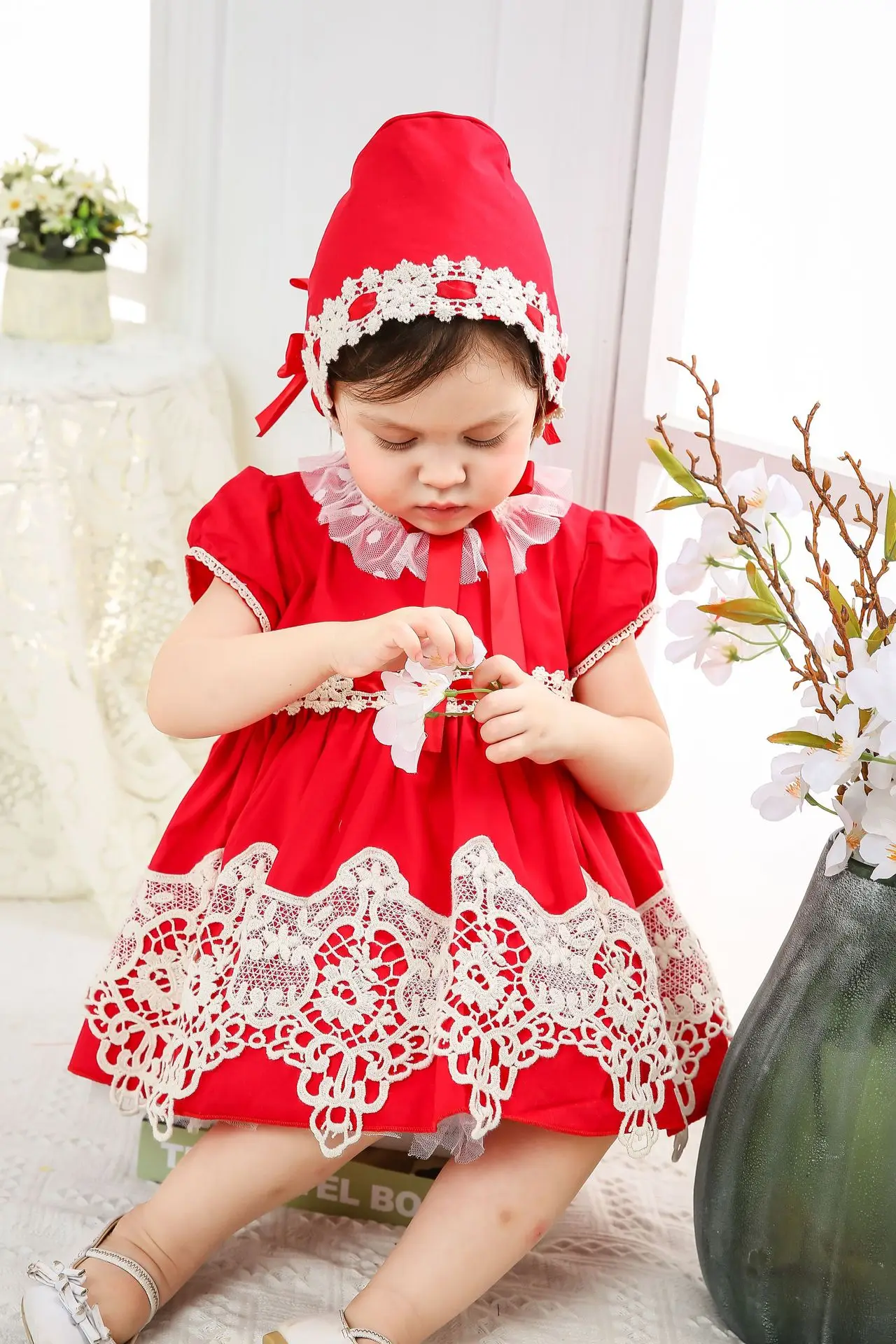 Весенняя испанская одежда для детей красное кружевное платье с вышивкой для девочек детское платье принцессы с бантом-бабочкой на день рождения, комплект От 2 до 6 лет
