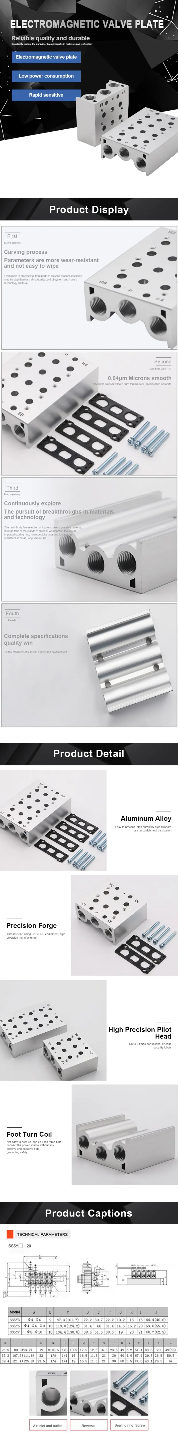 【Model】: XCSS5Y3-20/XCSS5Y5-20/XCSS5Y7-20/XCSS5Y9-20 【Suitable valve】: XCSY3-20/XCSY5-20/XCSY7-20/XCSY9-20 【Container form】: installed on the whole manifold plate 【P(SUP) R(EXH) mode】: common SUP common EXH 【Number of valves】: 2~20bit 【A. B port piping position】: on the valve 【Note】: For more than 10 digits (XCSS5Y 7 digits and 5 digits or more), please pressurize from the P port on both sides, EA and EB port exhaust on both sides. 【Package Include】:1 x Electromagnetic Valve Plate 【There are many other types of pneumatic components in our shop, please feel free to contact us】