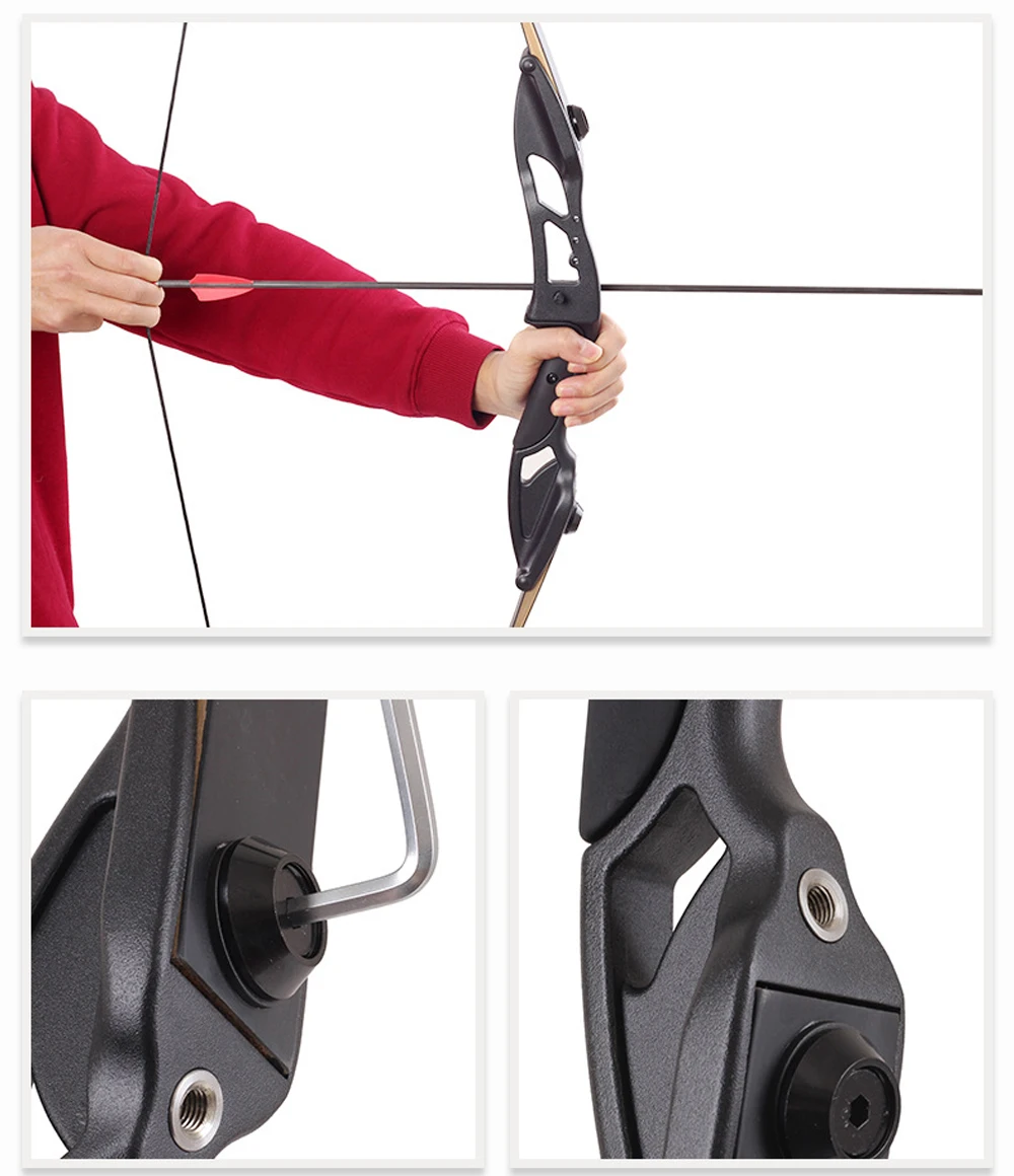 Сумка для переноски лука Цвет: черный Вес тяги: 30/40/50 фунтов Длина банта: 56" Ручка банта: алюминиевый сплав магния Материал: многослойный бант Вес: около 1,2 кг Особенности: 1. Ручка банта принимает дизайн ветрового туннеля с открытым отверстием, который эффективно уменьшает эффект бокового ветра на стабильность съемки, 2. Бант имеет прочную текстуру, прочность и долговечность Гладкая гладкая отделка в полости шнурка для максимальной защиты bowstring Назначение: для легкой атлетики, стрельбы, охоты Хорошая эластичность и высокая эффективность Используется для: тренировки стрельбы из лука для молодых людей и взрослых Будьте осторожны при использовании