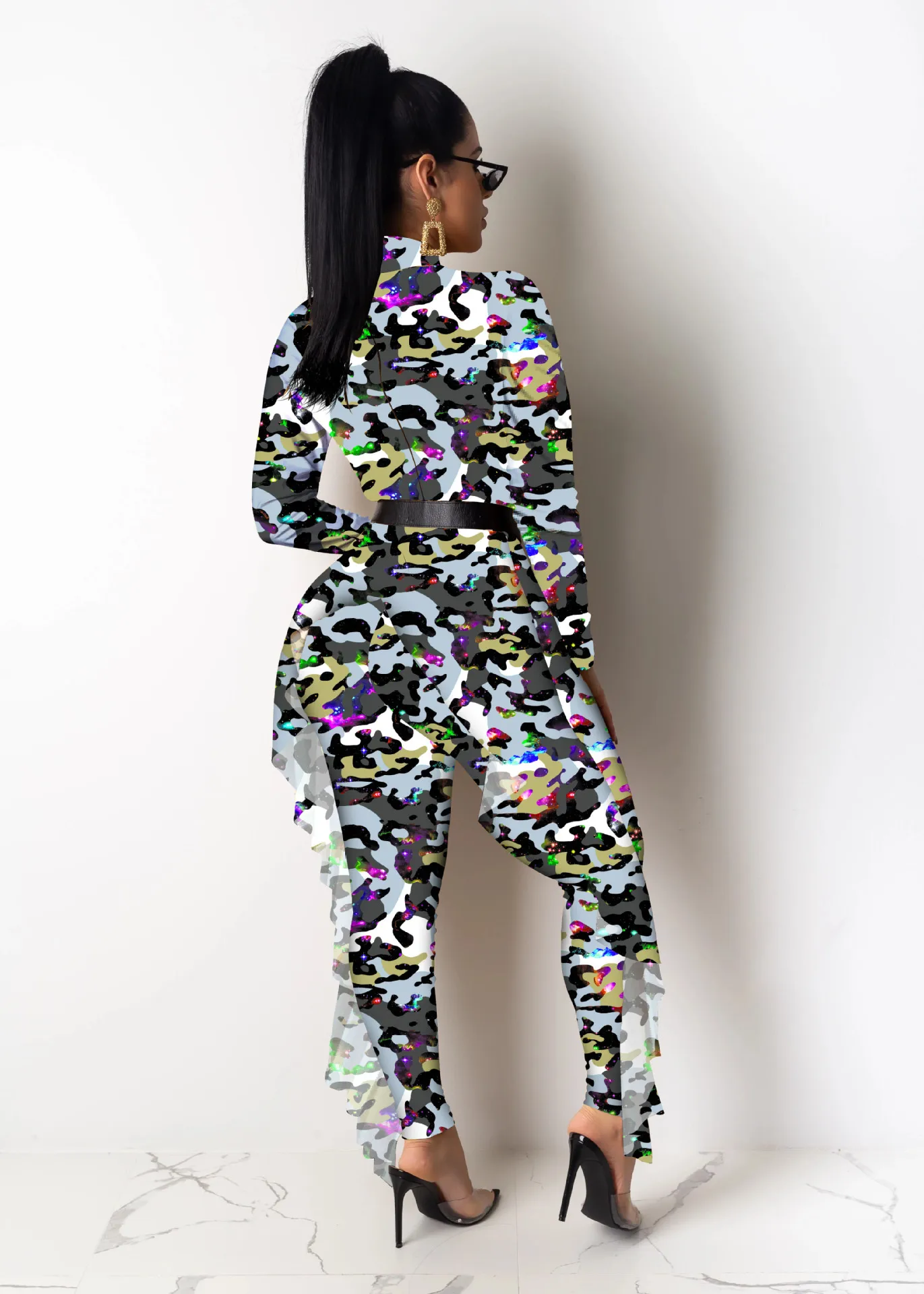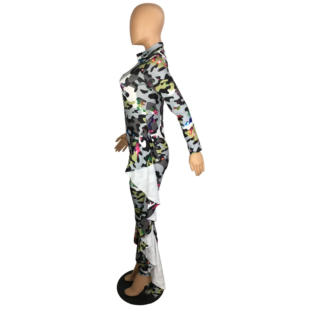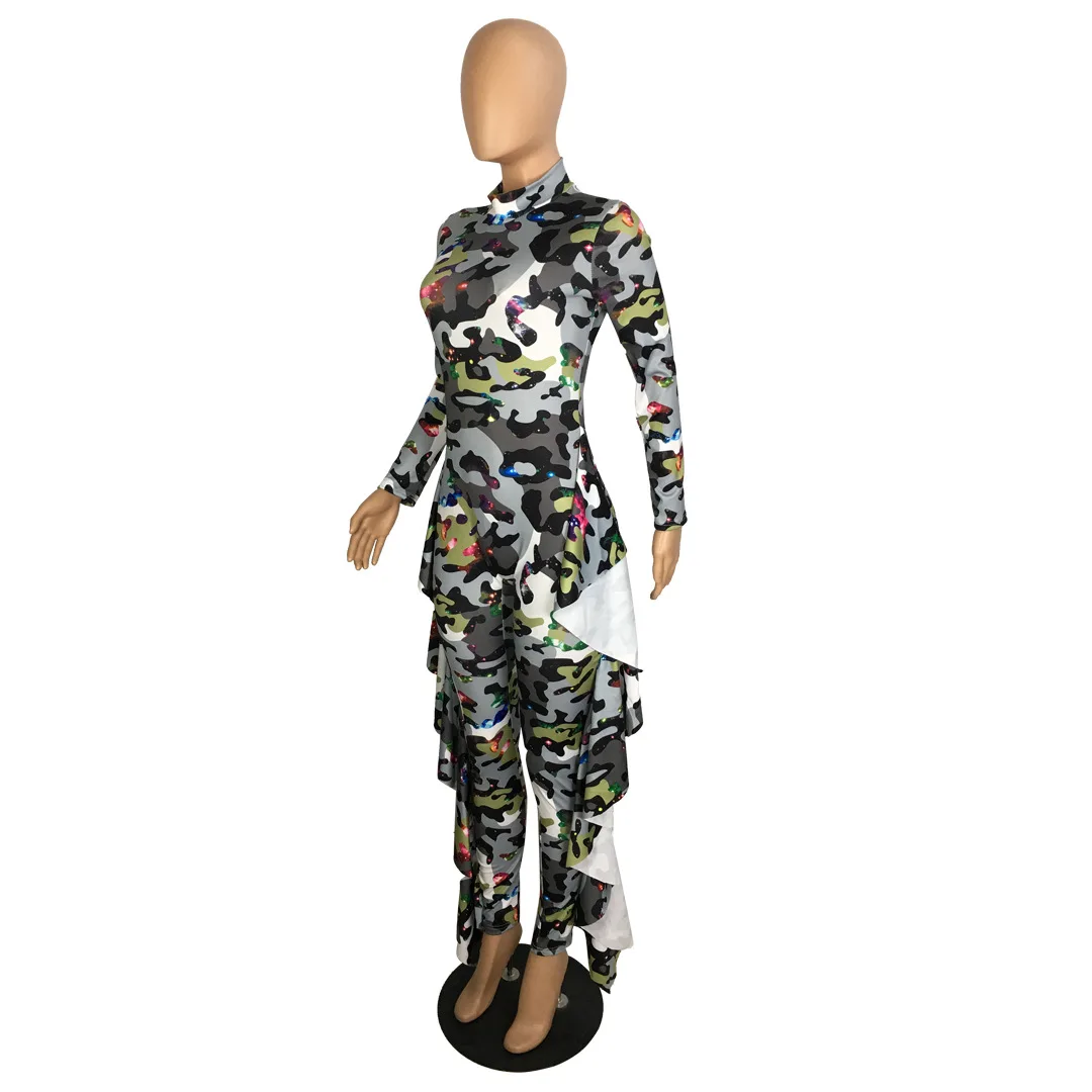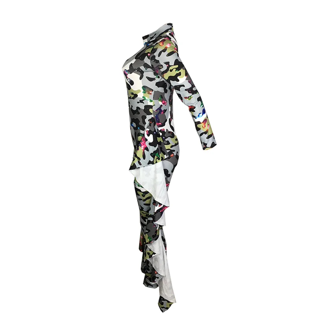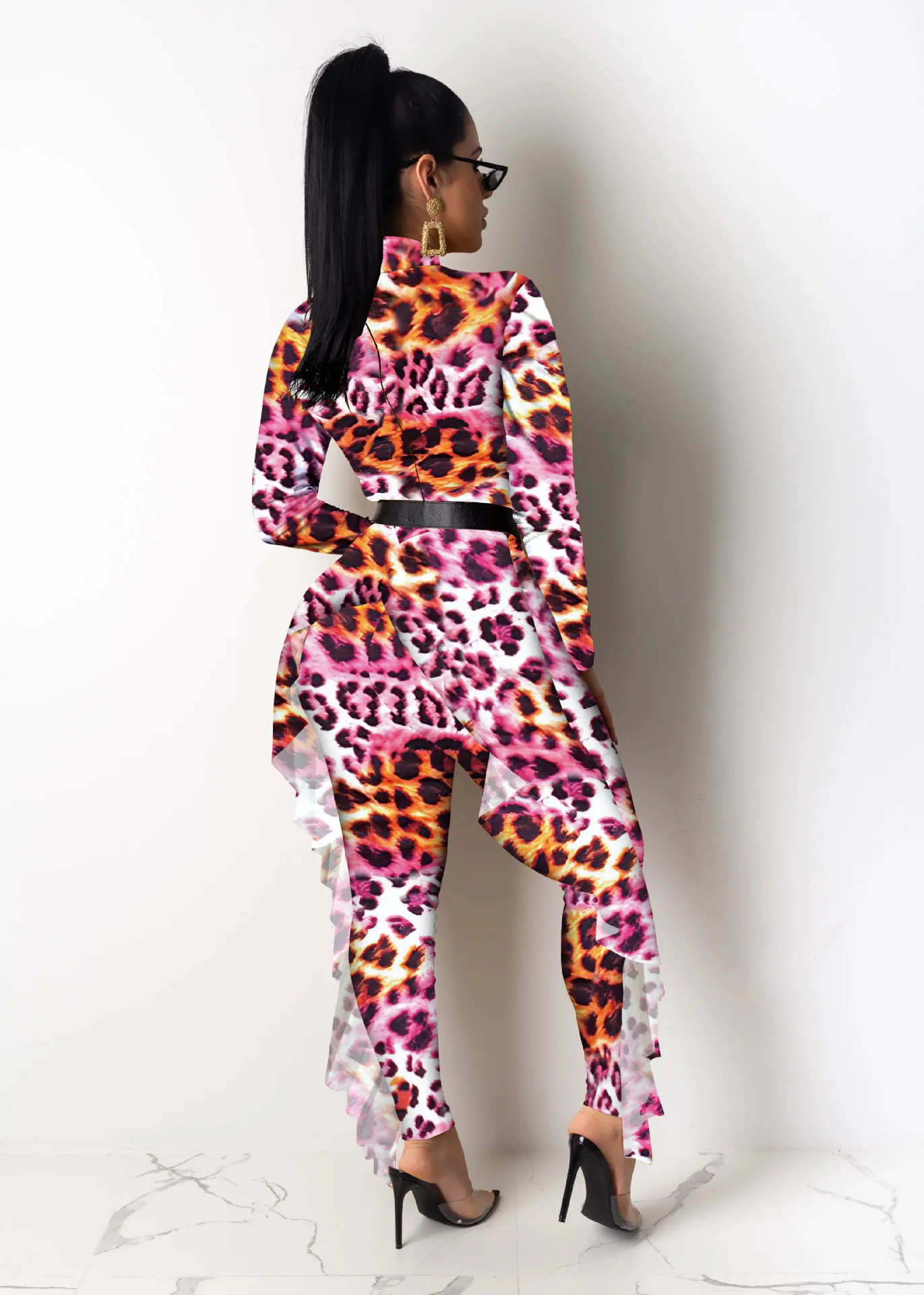 Женский комбинезон с леопардовым принтом и оборками, повседневный Облегающий комбинезон с высоким воротником и длинным рукавом, вечерний комбинезон для ночного клуба