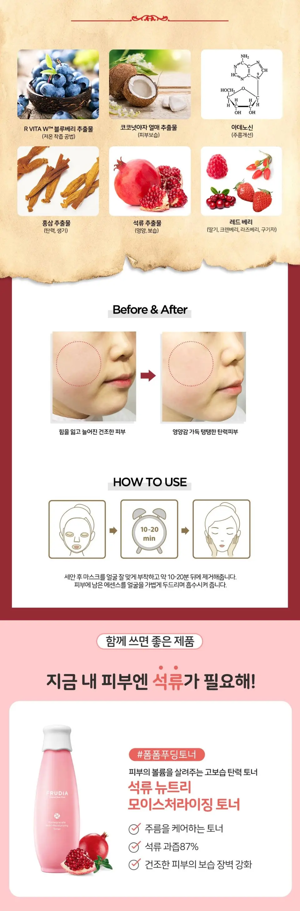 Facial mask - Royal de Ginseng Red Mask FRUDIA Moisturizing Brightening Elasticity Skin care Korea cosmetic