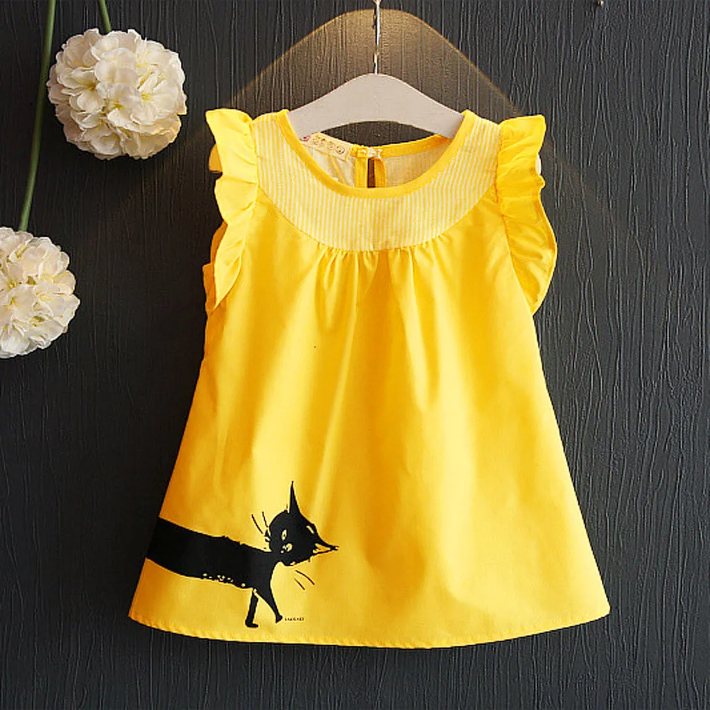 Детские платья для девочек, повседневные платья принцессы без рукавов с рисунком рыбки + кошки, vestido de verano para niñas t5, 2020