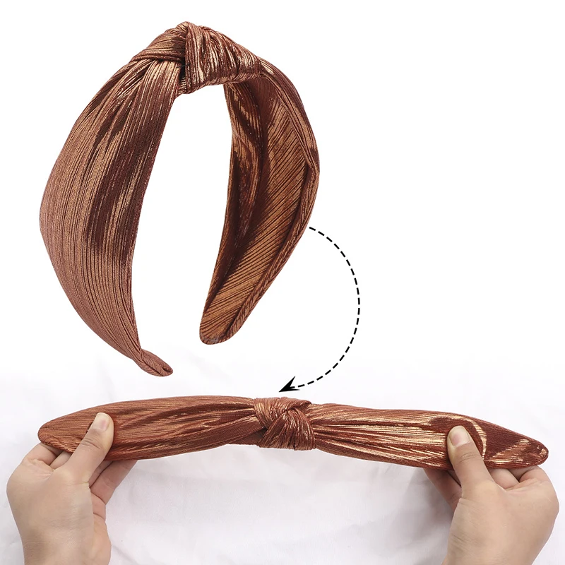 Винтажная блестящая шелковая ткань, широкая повязка на голову, обруч на голову, аксессуары для волос