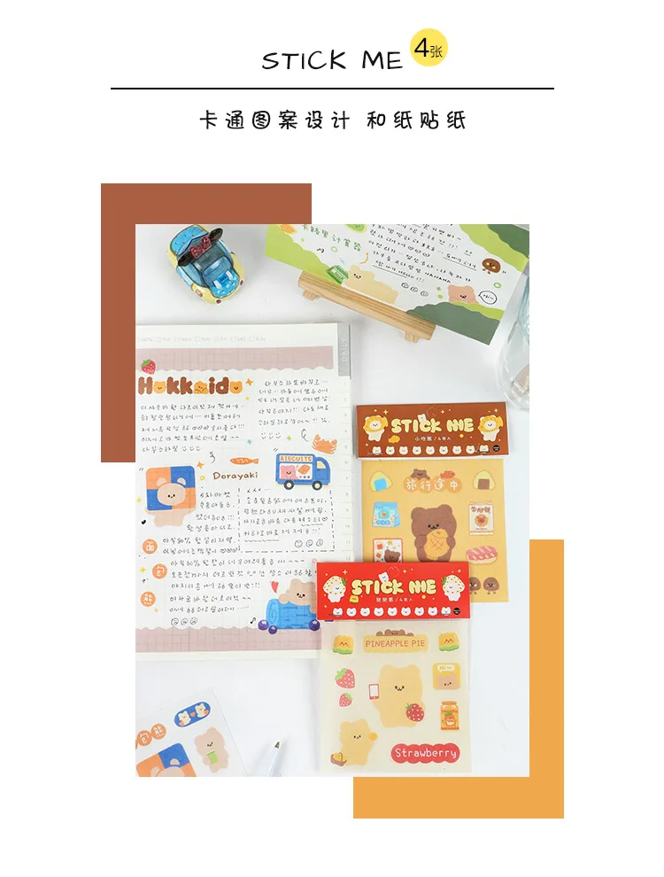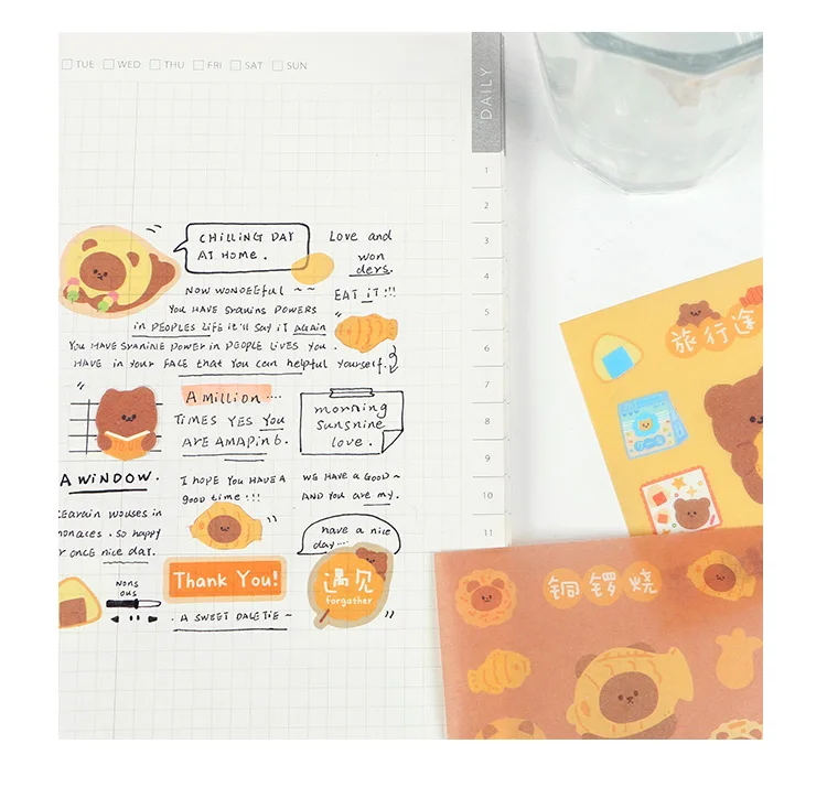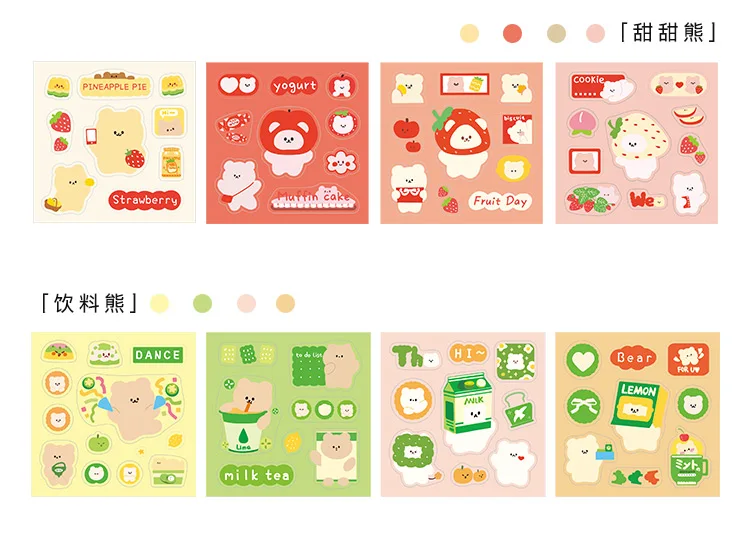 Набор стикеров серии Kawaii с изображением медведя, Студенческая декоративная этикетка, креативная мультяшная ручная учетная запись, канцелярские товары, подарок