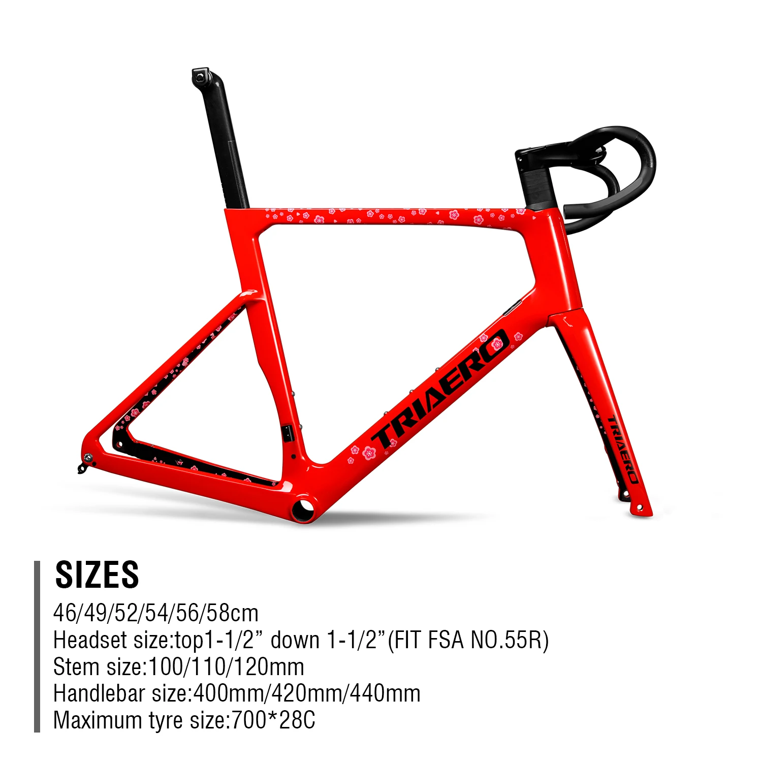 Triaero дороги углерода рама велосипедная Рама плоское крепление дисковый тормоз дороги углерода рама 46/49/52/54/56/58 см