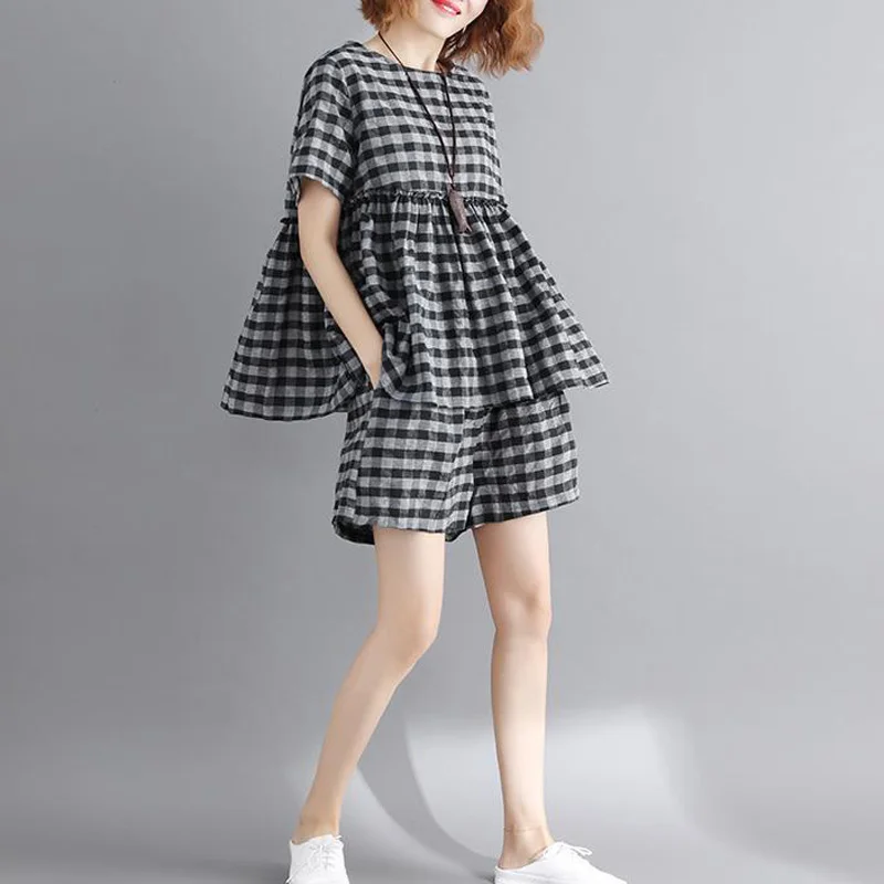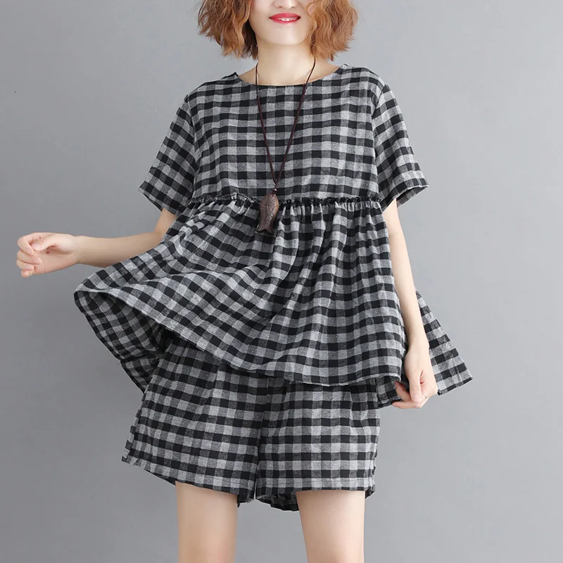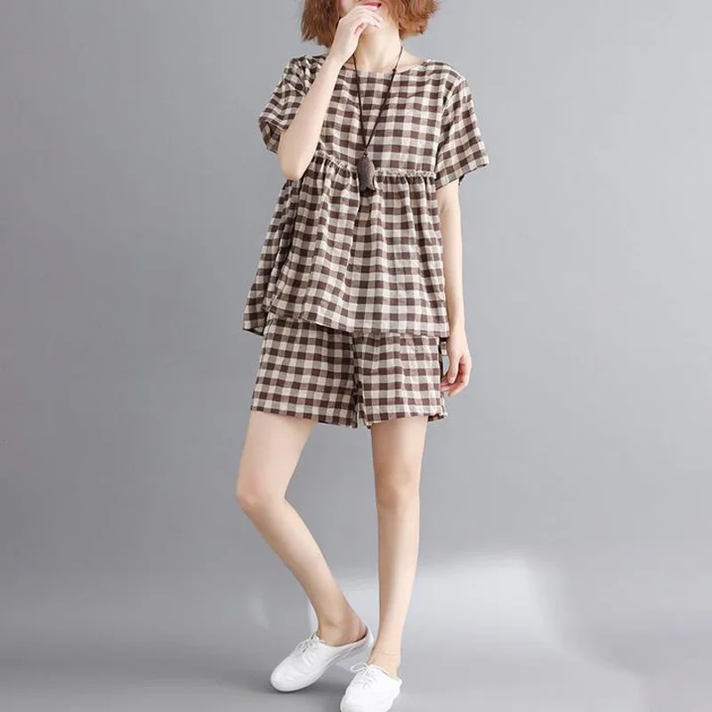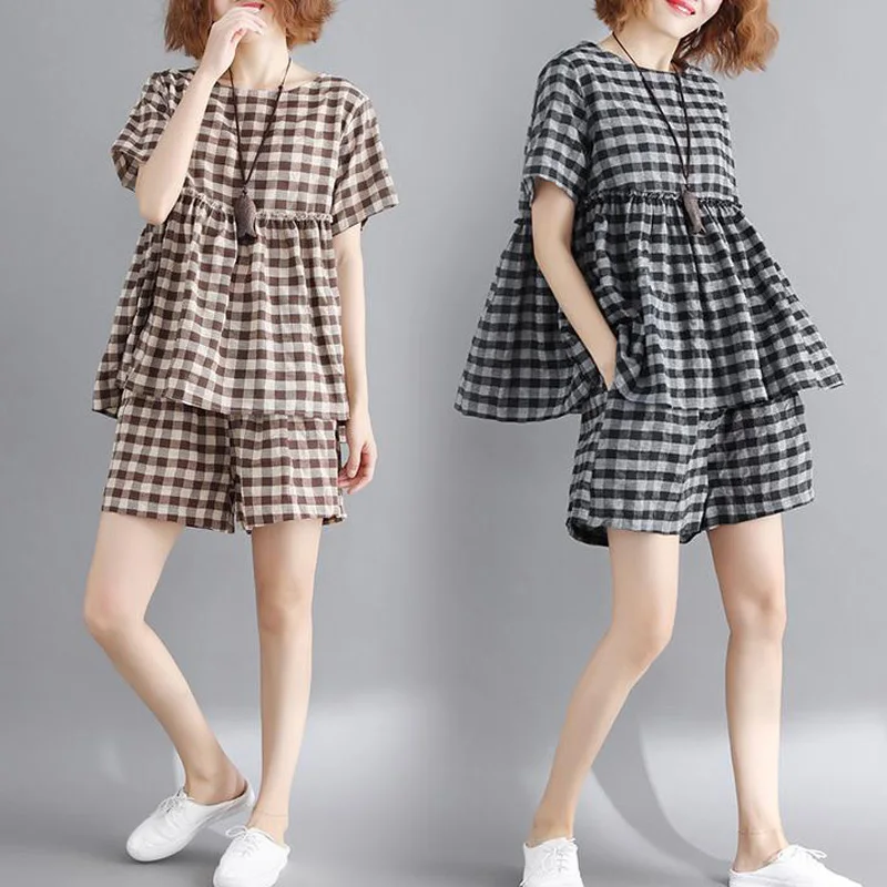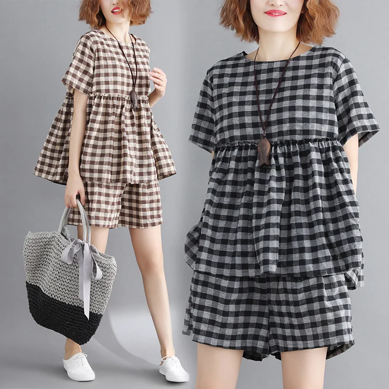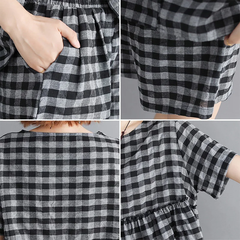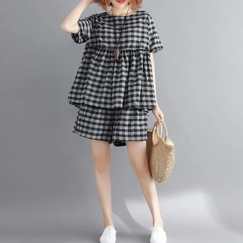 *Item Description:Casual, Loose, Grid, 2pcs Set, Short Sleeve, Round Neck, Wide Leg