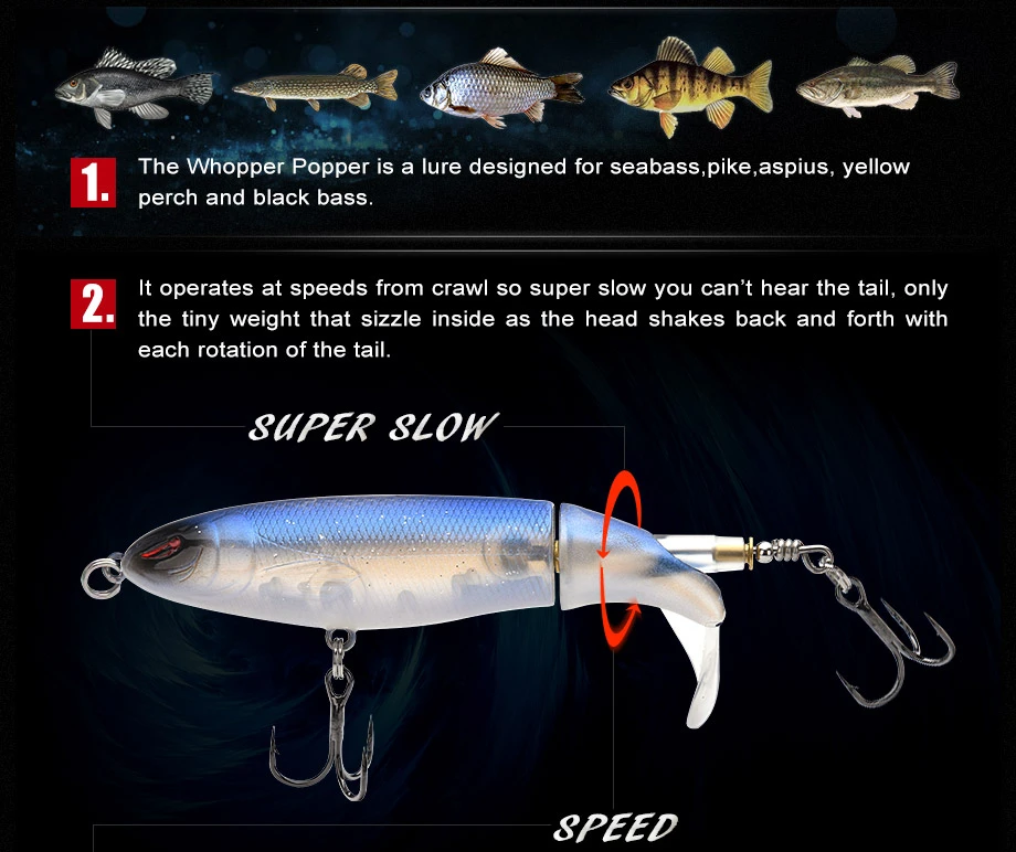 1.Whopper Popper-приманка, предназначенная для морской рыбалки, щуки, аспиуса, желтого окуня и черных басов.