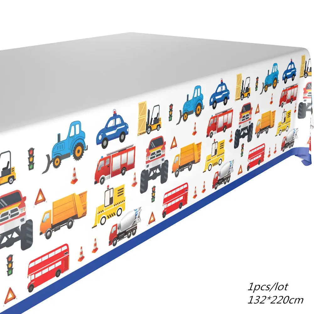 132*220 см скатерть с мультяшными автомобилями для строительства транспортных средств, вечерние одноразовые чехлы для стола для детей, вечерние принадлежности на день рождения, 1 шт.