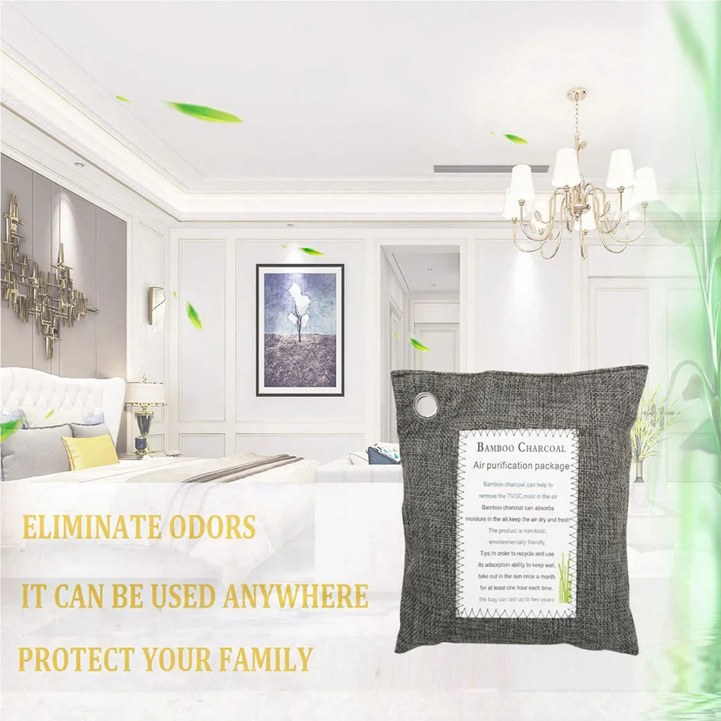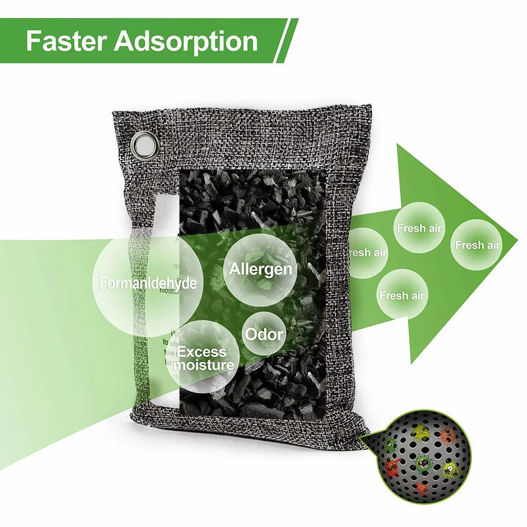 【SAFE】 наши сумки для очистки воздуха с активированным углем безопасны и эффективны, которые не имеют запаха или химических веществ. Они могут очистить ваш космический воздух самым естественным, 100% безопасным способом! Впитывает влагу и неприятные запахи, как губка. Эти дезодоранты с натуральным бамбуковым углем обязательно будут в безопасности, и вы можете оставить их вокруг своих питомцев и ваших детей, не беспокоясь о каких-либо инцидентах, которые могут нанести ущерб их здоровью.