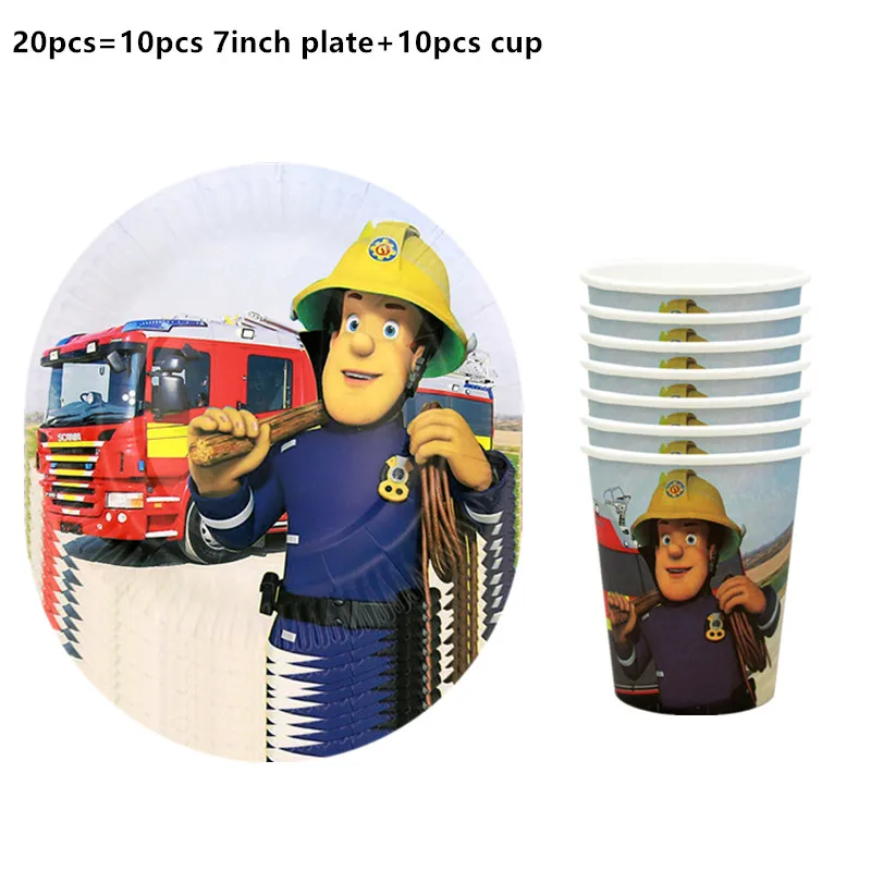 20 шт одноразовые чашки + тарелка Пожарный Сэм темативечерние украшения детский душ праздвечерние чные атрибуты Пожарный Сэм тематические одноразовые чашки
