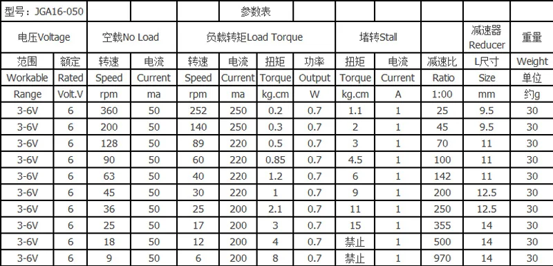 Например 1, скорость двигателя, который вы выбираете 6 в 30 об/мин и посылка A; Вы получите двигатель с 6 в 30 об/мин