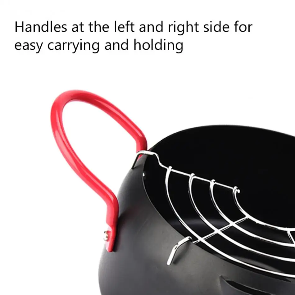 Household Kitchen Cooking Fryer Round Frying Pot With Oil Strainer For Gas And Induction Cooker
