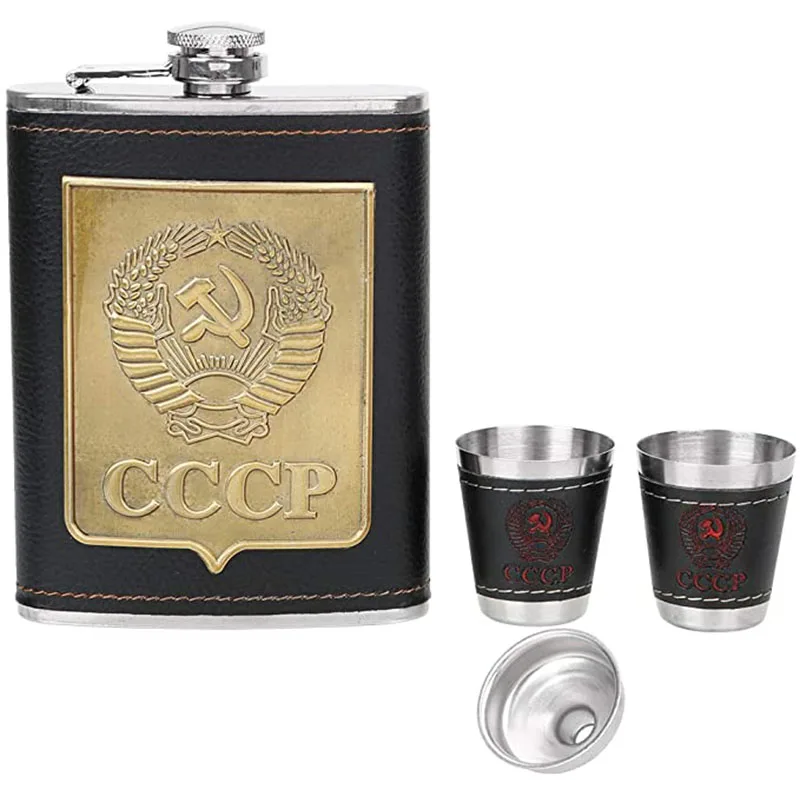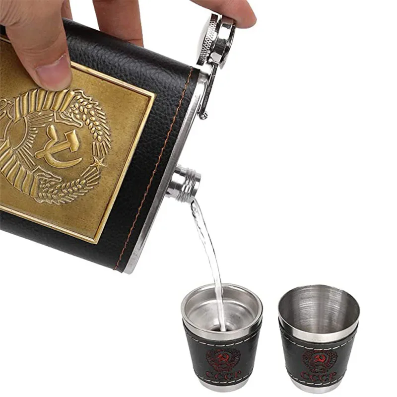 8 унций хип набор фляг из искусственной кожи бутыль нержавеющая сталь фляга для виски бутылка для вина гравировка Карманный подарок для мужчин посуда для напитков