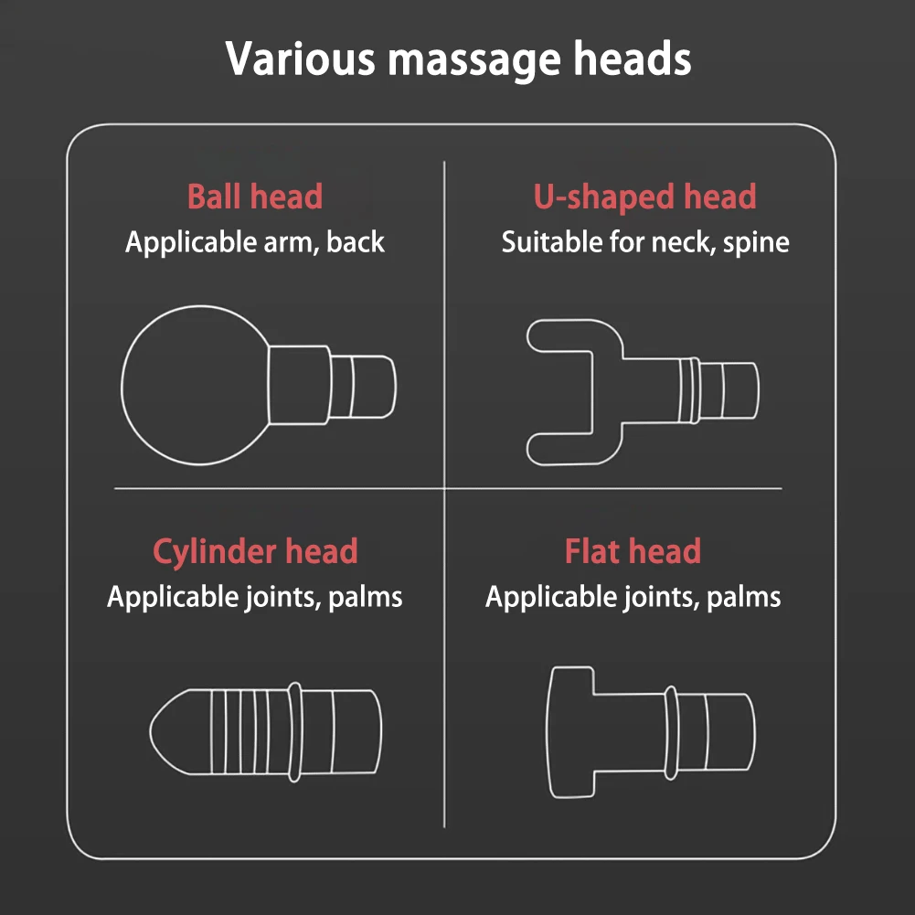 2. Четыре различных массажных головки: массажер оснащен четырьмя различными