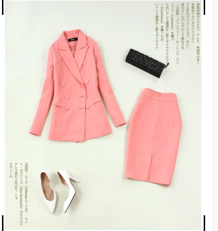 Новинка, профессиональный женский костюм для весны и лета размера плюс в офисном стиле, двубортный розовый костюм + юбка на бедрах + юбка