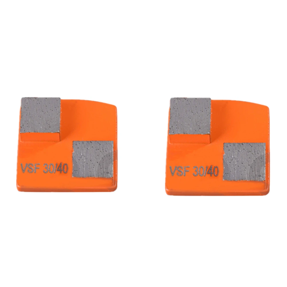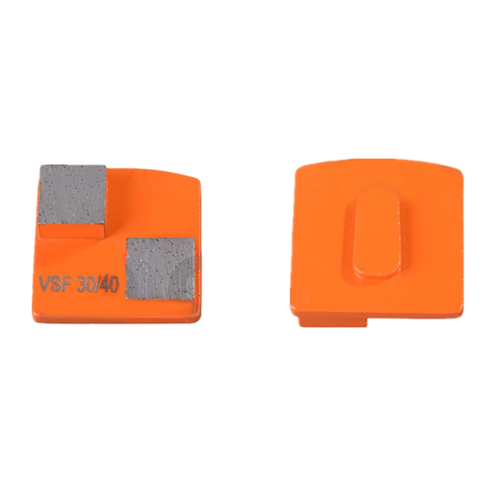 Husqvarna Diamond Grinding Shoes for Concrete and Terrazzo Floor Metal bond diamonds have high strength, excellent wear resistance, and a low friction coefficient. Metal bond diamonds high grinding efficiency and low grinding force generates less heat in the grinding process. Applications: suitable for general (concrete,stone) grinding use while mostly they are used for paint, glue, epoxy removal and floor coating, high quality and high efficiency, long lifespan. Advantage:very efficient for the toughtest situations such as the removal of very persistent coating. Features:excellent wear resistance, lower cost, better surface finish etc. Note: special logo, segment size and shapes, installation are available by customer's request. Product Name: Husqvarna Redi Lock Diamond Grinding Shoes with Two Square Shape Segments Item No.: GS44 Brand: Keller Tools Material: Diamond Segments + Metal Blank MOQ: 12 pieces/set Segment Sizes: 20*20*12mm*2T (Two Square Shape Segments) Connection: Husqvarna Redi Lock Connection Scanmaskin Redi Lock Connection Machine: Husqvarna/Scanmaskin Quick Connceting Grinding Machine Segment Grit: 16#, 24#, 36#, 46#, 50#, 80#, 100#, 120#, 180#, 200#, 270# etc. Grit Hardness: Very Soft Bond, Soft Bond, Medium Bond, Hard Bond, Very Hard Bond, Extreme Hard Bond. Quality: International Standard Quality Application: Concrete and Terrazzo Floor