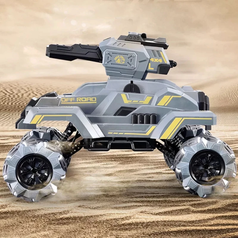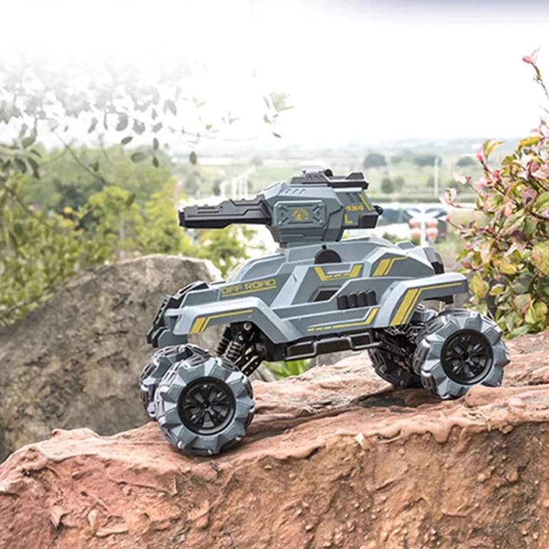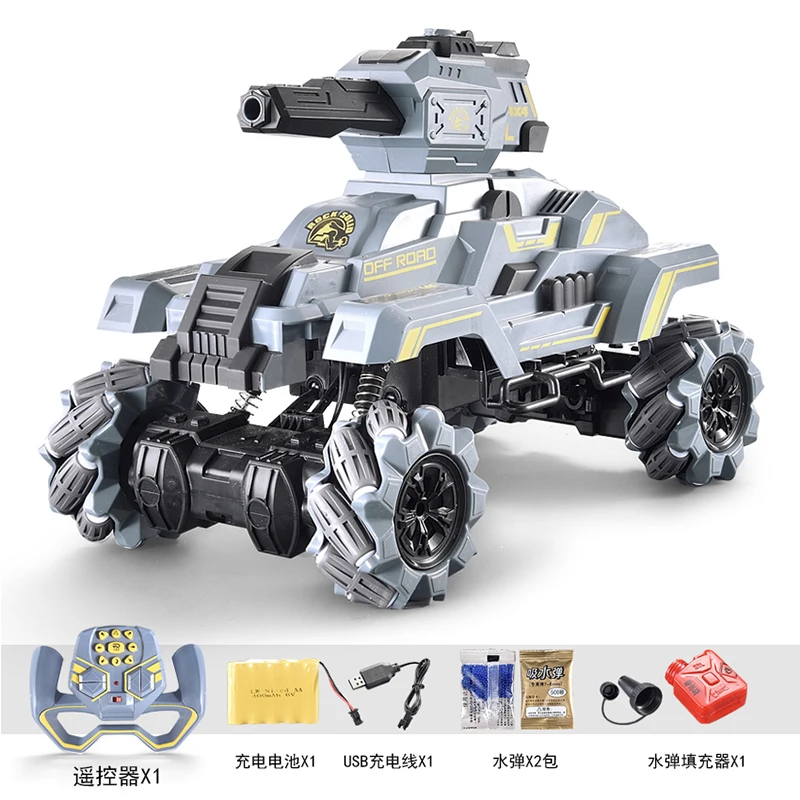 Особенности: -Значительно скручивайте угол и легко справляйтесь с различными видами дождя. -Конструкция из сплава всего тела, более ударопрочный, безопасный и надежный. -Четырехколесный привод, двойной мощный двигатель выходной мощности, высокая лошадиная мощность скалолазания. -Четыре амортизатора, эластичная + ножная пружина, резиновое колесо Hi-Q, нескользящая, идеальный опыт. Функциональный дисплей: боковой дрейф, наклонный дрейф, всестороннее вождение, тринадцать проходов, вращение на месте, автоматическая демонстрация, шестиколесная система привода, вперед, назад, влево и вправо, бомба воды запуска. Технические характеристики: Размеры: 40*31*28,5 см Время зарядки: 2 часа Время использования: около 30 минут Режим дистанционного управления: 2.4GH Расстояние дистанционного управления: 50 м Режим зарядки: usb-кабель для зарядки Материал: сплав + пластик + электронные компоненты Упаковка: цветная коробка Упаковочный лист: 1 * Р/У танки 1 * Дистанционный пульт Аккумулятор 1*6 в 1 * кабель для зарядки 1 * водяной бомба