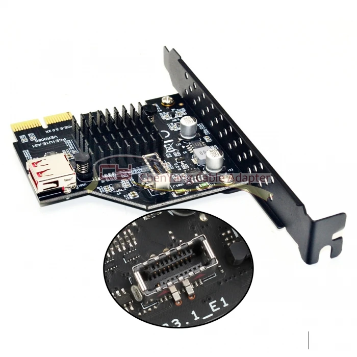 Адаптер представляет собой конвертер для преобразования доступного PCI-E материнской платы в разъем USB 3,1.