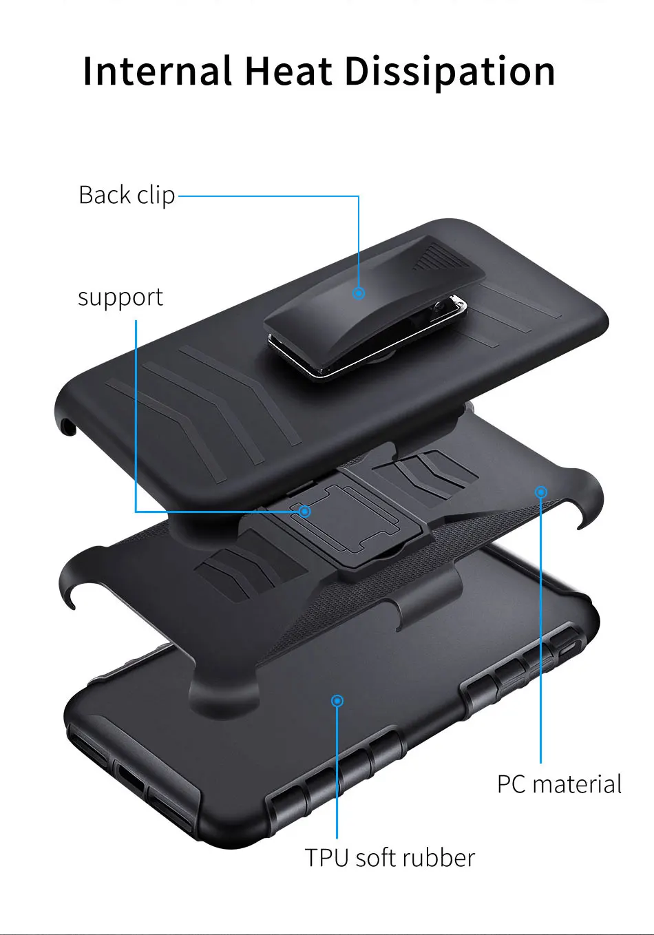 KISSCASE 3 in 1 Shockproof Case For Huawei Mate 20 Lite P20 P30 Pro Lite Y3 Y5 Y6 Y7 Y9 2018 2019 Waist Belt Clip Cover Case