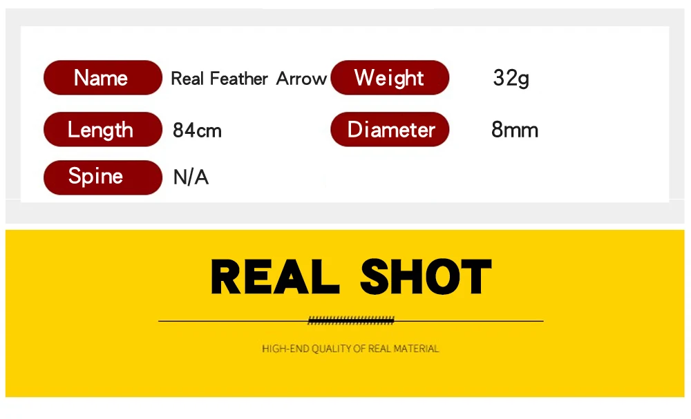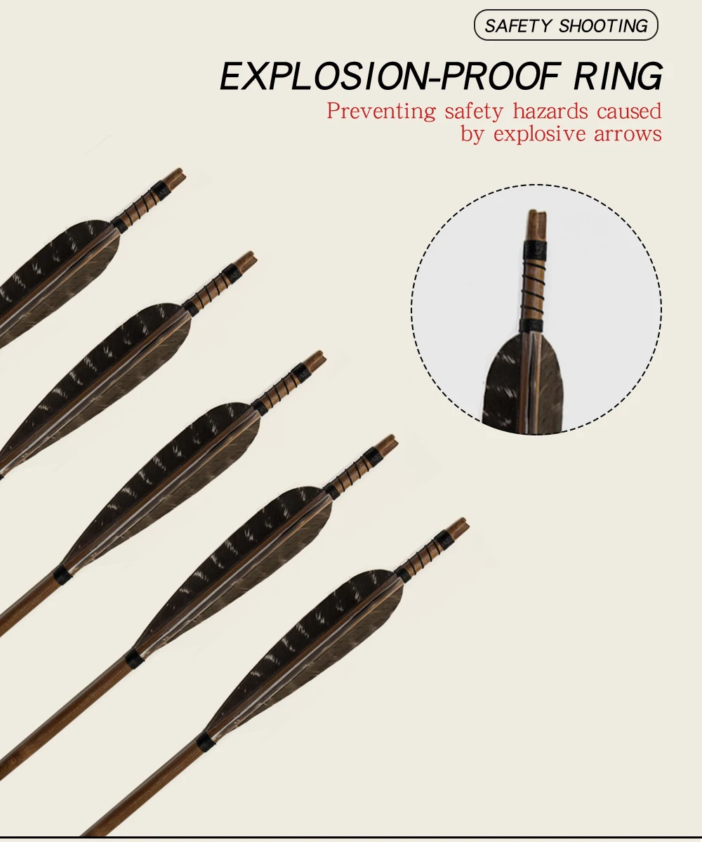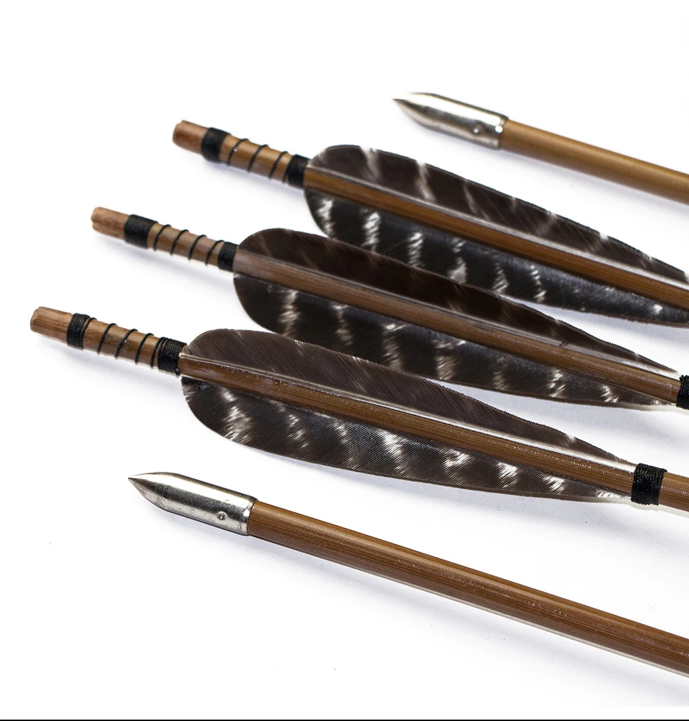 Параметры: Длина вала: 82 см/32 дюйма Диаметр: 8 мм Вал Материал: бамбук Перо Материал: перо Тип точки: традиционное пальто со стрелками Вес: около 35 г Особенности: 1. Размер пера 5 дюймов делает стрелки более стабильными во время полета 2. Перья со стрелками изготовлены из настоящих перьев и запутаны плетеной веревкой, чтобы предотвратить падение перьев со стрелы. 3, стрелка обрабатывается специальным процессом, чтобы предотвратить падение стрелки во время съемки Стальные наконечники стрелы подходят как для целевой практики, так и для охоты. Подходит как для комбинированного банта, так и для рекурсии. Пользователь Обратите внимание: Не прижимайте к бетонной стене или любому твердому веществу. Это может повредить стрелки.