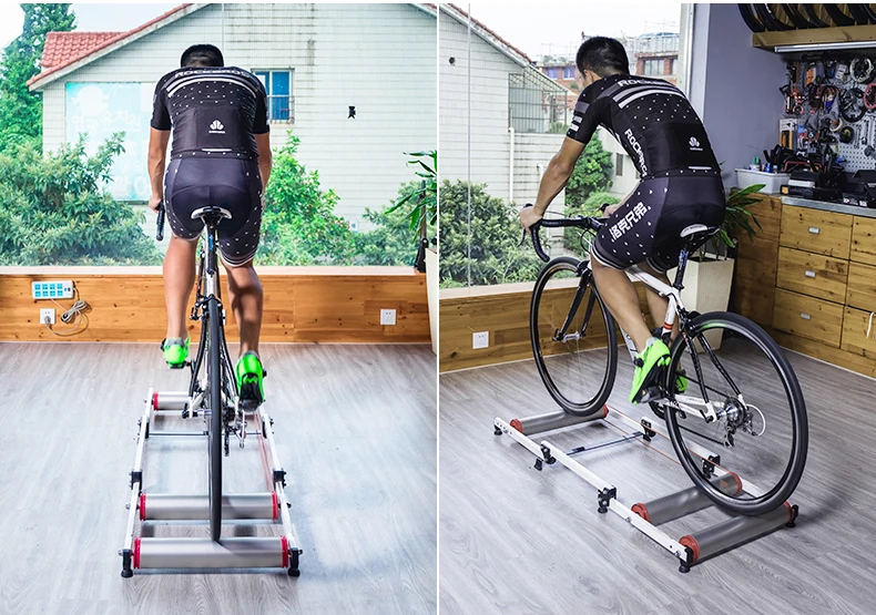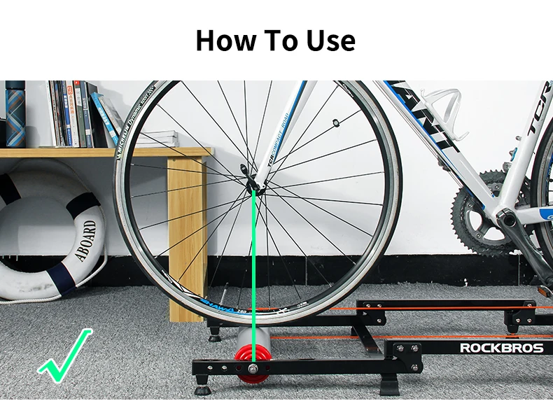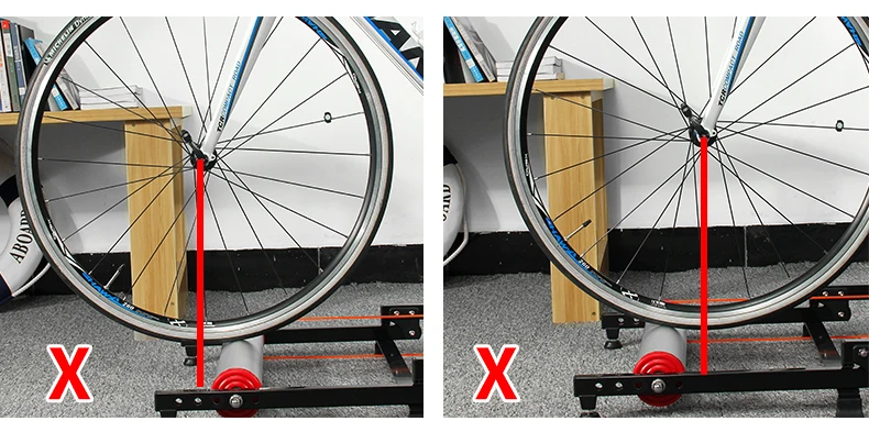 Правильно отрегулировать длину велотренажер. При размещении велосипеда на велотренажер, сделайте переднюю ось по возможности на той же вертикальной линии с передними роликами, чтобы расстояние было правильным.