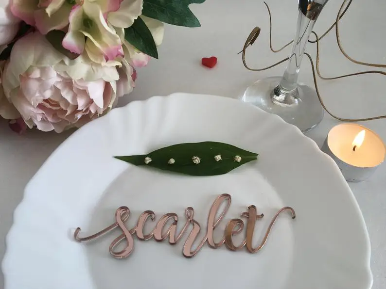Розовое золото зеркало лазерная резка имена гостей Настройка места персонализированные акриловые знаки Таблица Свадебная табличка имя эскорт место карты каллиграфия теги