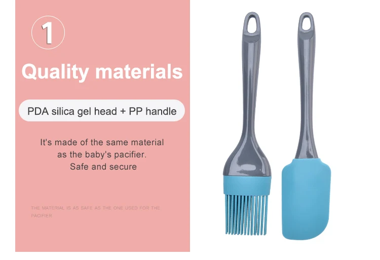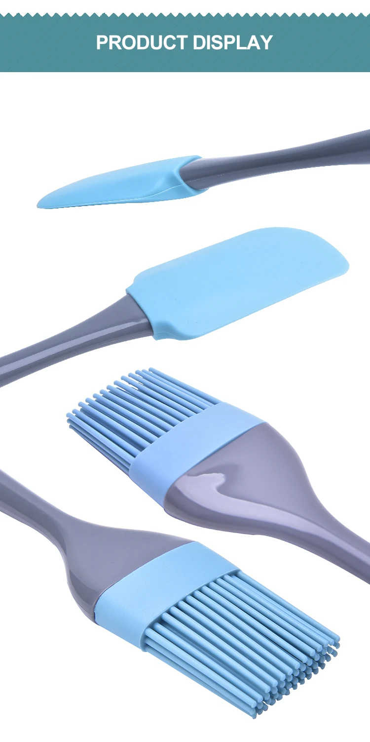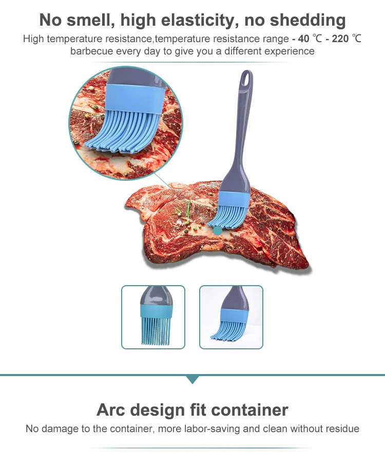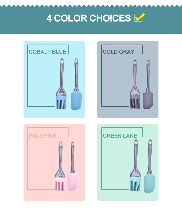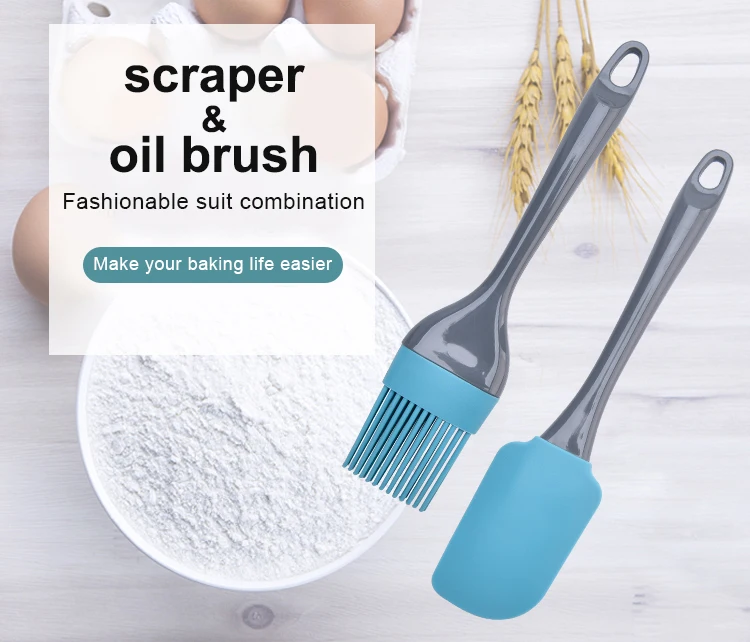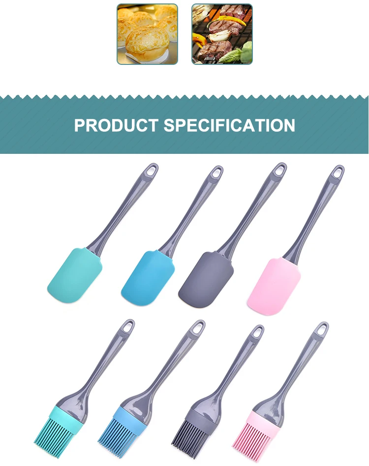 Размер скребок: 24,8 × 5,2х1, 0 см Материал FDA силиконовая часть головки + PP Размер ручки масляной щетки: 22,5 × 4.5x1.6 см Цвет: синий, серый, розовый, зеленый Вес скребок: 50 г, масляная щетка: 43 г Пищевой силикагель, нет специфического запаха, не линяет, высокая термостойкость, не выцветает, дизайн висячего отверстия