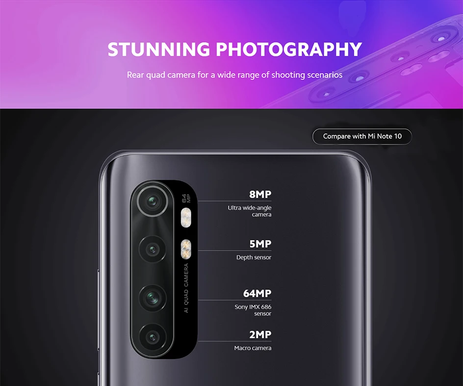 Процессор --------- Восьмиядерный Snapdragon 730G Экран ------- 6,47 ''2340x1080 FHD + 3D изогнутый AMOLED экран Камера ------ 64MP + 8MP + 5MP + 2MP Quad задняя камера, фронтальная камера 16MP Аккумулятор ------ 5260 мАч (Typ)/5170 мАч (min), быстрое зарядное устройство 30 Вт ОС ----------- MIUI 11, глобальная версия, поддержка обновления OTA Другие ------- WIFI, Bluetooth 5,0, GPS, OTG, NFC Сеть --- Full Netcom, Dual SIM Dual Standby 2G: GSM:2/3/5/8; 3G: WCDMA: B1/B2/B4/B5/B6/B8/B19; 4G: FDD LTE : B1/B2/B3/B4/B5/B7/B8/B18/B19/B20/B26/B28; TDD LTE: 38/40/41(2535-2655 МГц)