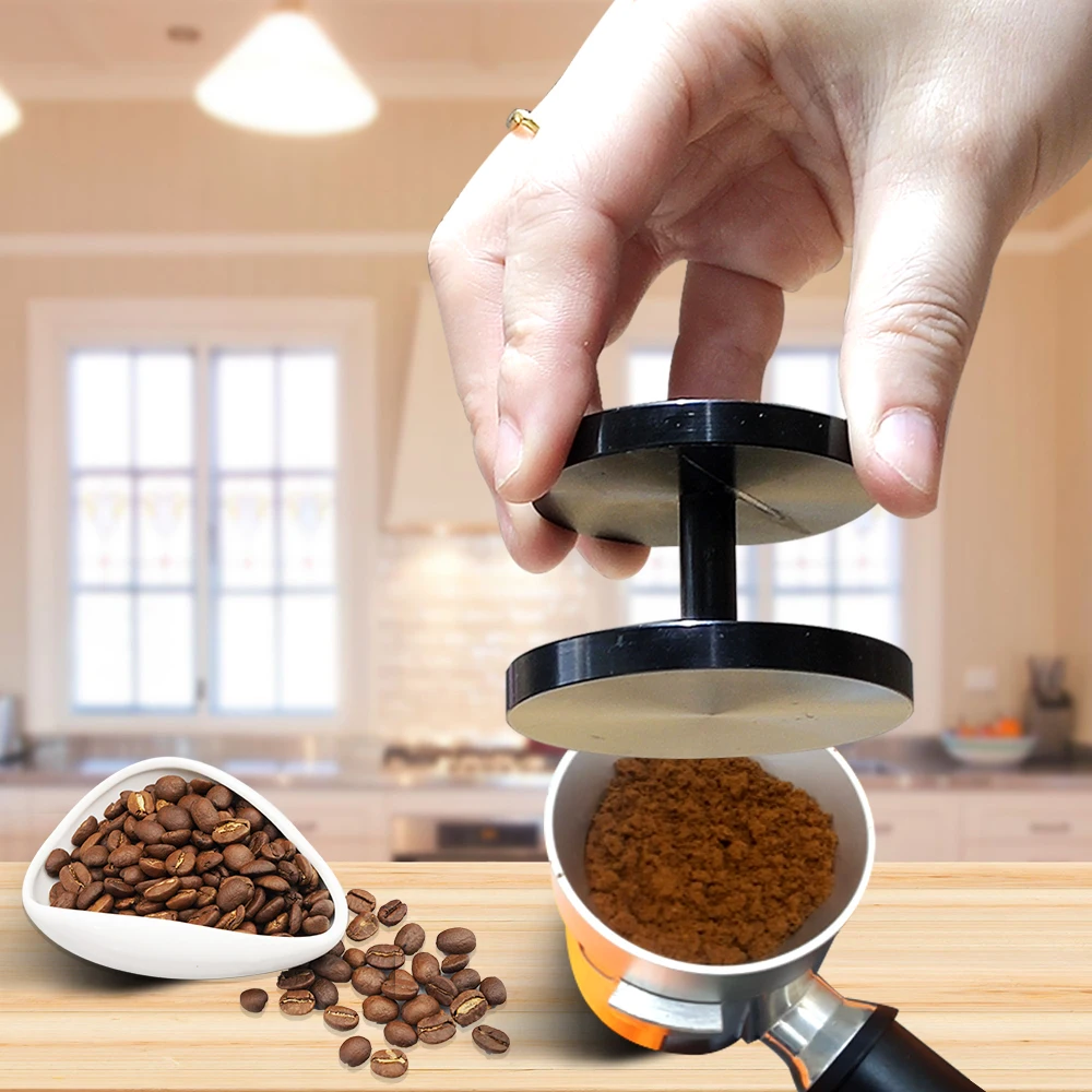 Двухсторонний Эспрессо-тампер сжимает молотый Эспрессо-кофе в шайбу, которая ровная и плотная для более богатого, более ароматного Эспрессо-пивоварения