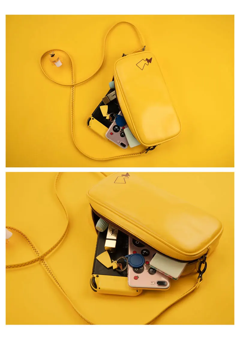 Сумка для хранения из ПУ кожи для Nintendo Switch, водонепроницаемая сумка-Кроссбоди для Nintendo Switch Особенности: Совершенно новое качество, высококачественная искусственная кожа, яркие цвета, прыжки, мощная емкость для хранения Параметры: Цвет: желтый Вес: около 300 г Материал: высококачественный материал из искусственной кожи Ткань: буферная губка + приятный для кожи бархат Плечевой ремень: 135 см Размеры: 26,2 см x 42 см x 13 см Посылка включает в себя: 1 х переключатель чехол 1 х плечевой ремень