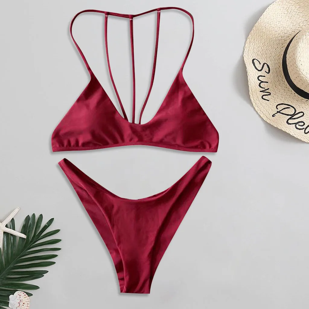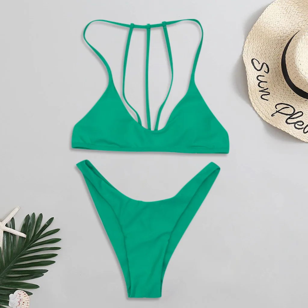 Женский летний сексуальный слитный купальник с открытой спиной и высокой талией