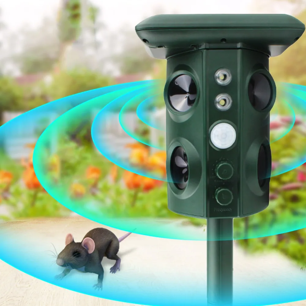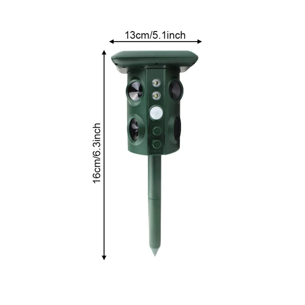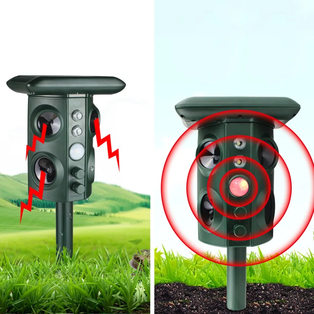 1. Он использует ультра звуковую технологию, звуковую сигнализацию/помехи и вспышку, чтобы изгнать вредителей. Это экологически чистый и гарантированно безвредный для человека, питомца. Легко избавиться от всех типов захватчиков животных в вашем саду. Он очень эффективен в отпугивании кошек, собак, оленей, птиц, skunks, мышей, Лис, енотов и т. д.