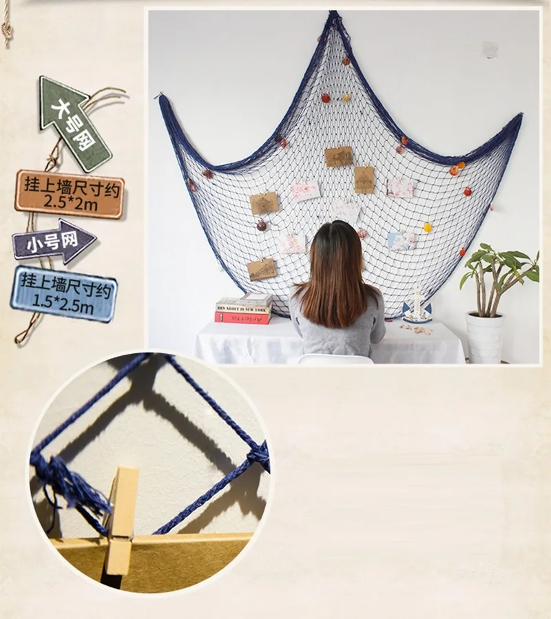 Особенности: Стикеры для украшения стен, украшения Технические характеристики: Материал: пеньковая веревка Цвет: бежевый, синий С сетки Размеры: 1 м х 2 м, 1,5 м х 2 м, 2 м x 4 м, 1 м х 2 м с оболочкой, 1,5 м х 2 м с оболочкой, 2 м x 4 м с оболочкой. Посылка включает в себя: 1 комплект x веревочная сетка Если вам нужны другие размеры, пожалуйста, свяжитесь с нами!