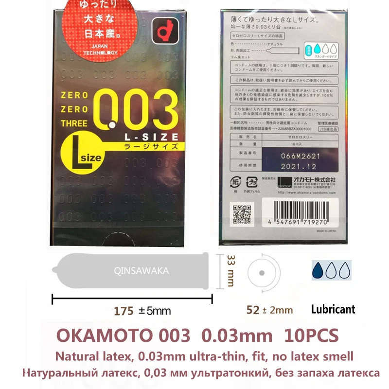 Бренд: Okamoto Артикул: 003 натуральная Fit Место происхождения: Япония, сделано в Японии Материал: натуральный латекс Гарантия: высокое качество Размеры: Толщина: 0,03 мм Размер М: 170(+/-5) мм, 50(+/-2) мм, Диаметр: 32 мм Размер L: 175(+/-5) мм, 52(+/-2) мм, Диаметр: 33 мм Особенности: * Ультра тонкий латексный, 0,03 мм, * Прочный, прочный, длительный срок службы Так что не стоит беспокоиться о запах резины * Enoough смазочного масла и гладкий * Хорошо проводят тепло, как, например, не носить, не может почувствовать это. * Гиалуроновая кислота; Так что не стоит беспокоиться о весиклес презервативы; * Нет дисковода и презерватив плотно прилегает, к голове, как единое целое * Как в том случае, если вы имеете секс вообще без презерватива Срок годности: 5 лет Срок годности отличается для разных лоскутов и вы получите самую свежую. Срок годности в следующем фото только для справки, не тот, который вы получите. Конфиденциальная посылка: безопасная упаковка без каких-либо слов о сексе Мы поддерживаем дропшиппинг