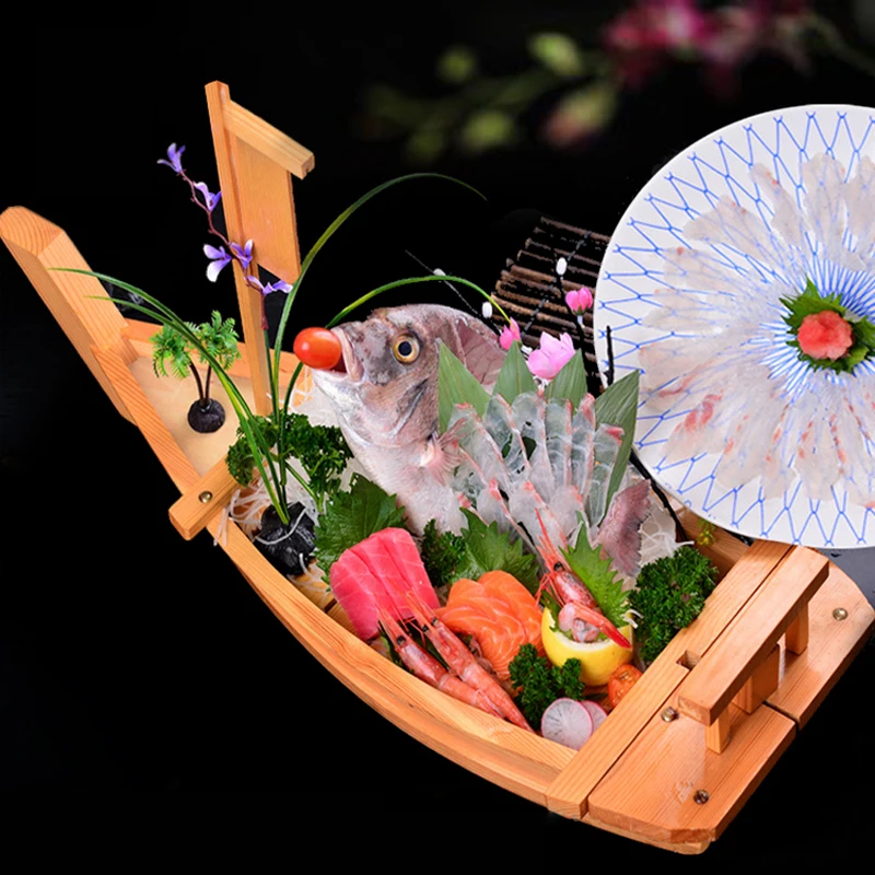 40 см до 50 см японская кухня лодки для суши поднос Морепродукты Инструмент Деревянный деревянный Ресторан ручной работы корабль Sashimi Ассорти холодное блюдо