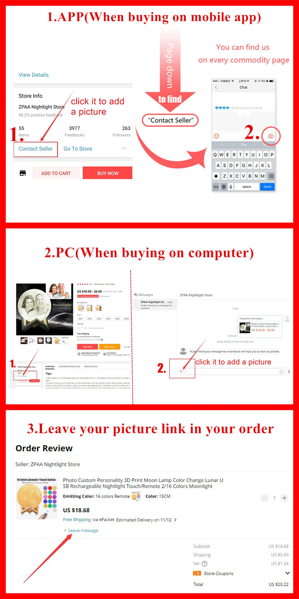 1. Убедитесь, что ваше изображение четкое. 2. Изображение полудлины с прозрачным лицом-это лучшее. 3. Если фото всего тела, пожалуйста, просто выберите 20 см, результат печати не подходит для других размеров. 4. Из-за разницы во времени, иногда мы не можем ответить вовремя, пожалуйста, пришлите нам ваши любимые фотографии и текст напрямую. Если фото не очень хорошее, мы немедленно свяжемся с вами.
