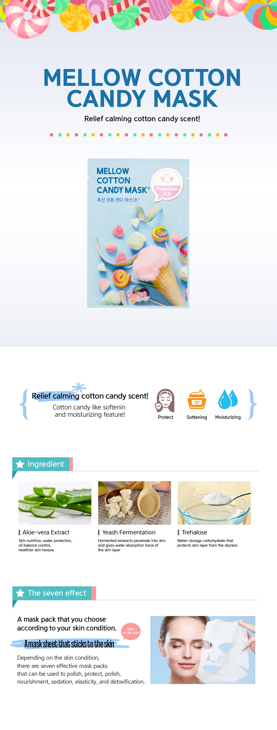 Facial Mask - Mellow Cotton Candy Mask Candy O' Lady Whitening Essence Mask Pack Face Care Skin care Korea Cosmetic