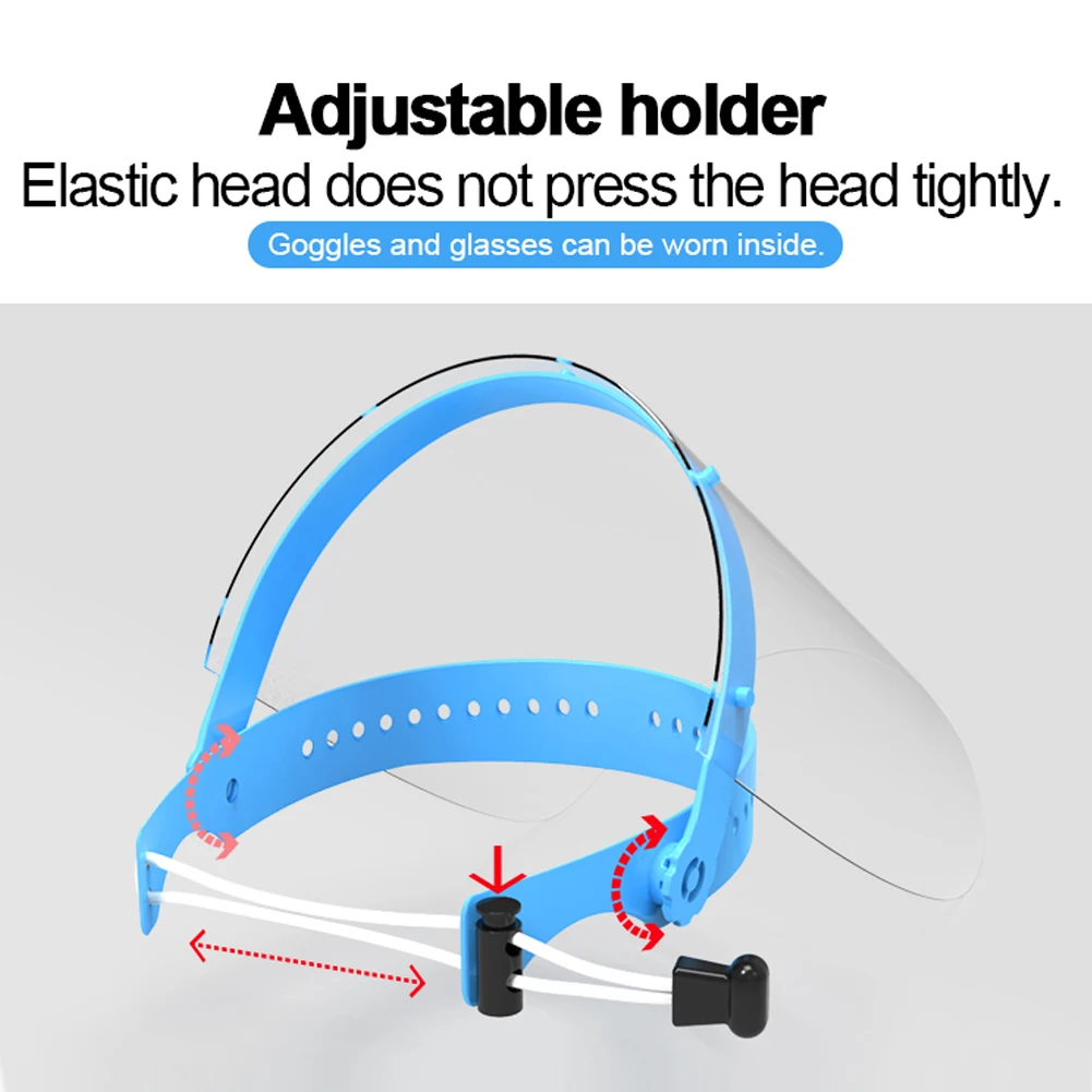 * 4. Держатель имеет два поворотных соединения, поэтому вы можете регулировать угол защиты для удовлетворения различных потребностей, а эластичная повязка на шнурке плотно прилегает к вашей голове.