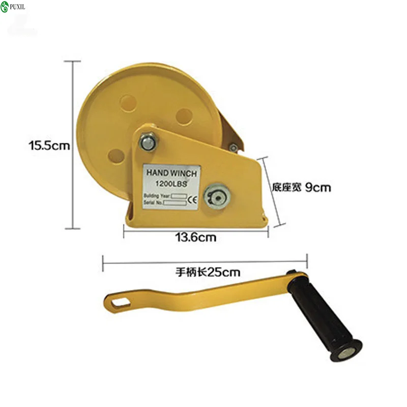 Наименование: ручной подъемник 1200LB Боковая тяга: 500 кг Продольная для: 150 кг Соотношение скорости: 4: 1 Сила Руки: 180N Диаметр троса: 4 мм Длина троса: 8 м Тип рыболовного крючка: 0,5 тонн с ушком Диаметр колеса ролика: 132 мм Внутренний диаметр роликового диска: 48 мм Скорость подъема: около 6 м/мин Знания материалов: лебедка, трос, крюк Посылка Размер: 22*17*17 см Вес: 4,6 кг